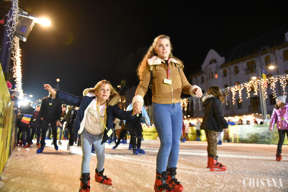 Vineri, la 17.50, era deja plin de copii, mămici și curioși. Toți așteptau să fie aprinse luminile și să își facă fotografii cu bradul și cu cei dragi. Cu o mică întârziere, 5-6 minute, luminile au invadat orașul în zona centrală, din perimetrul desfășurării Târgului de Crăciun, spre clădirea Primăriei Oradea, Podul Sf. Ladislau, Piața Ferdinand și strada Republicii.