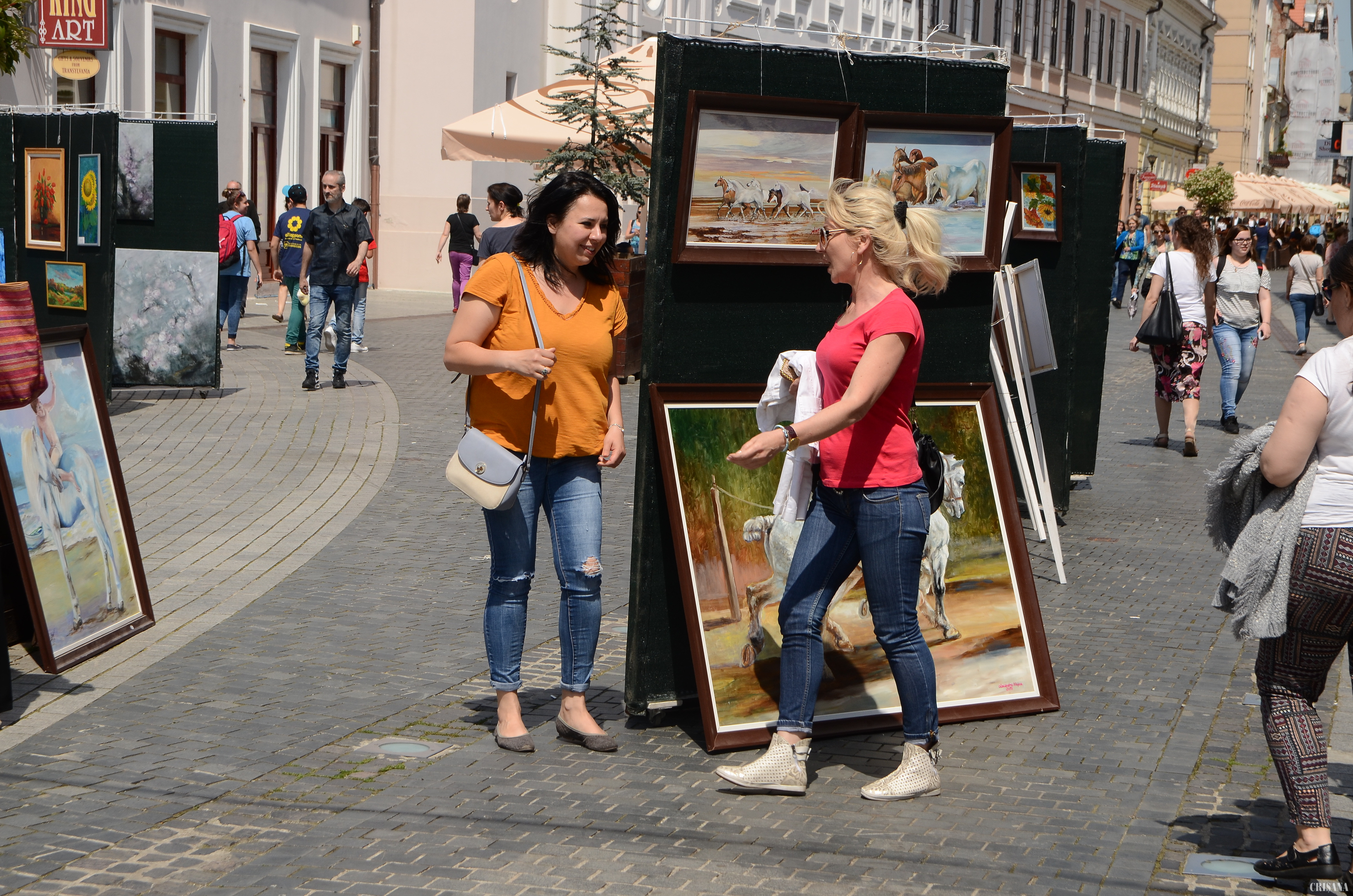 Trecătorii se pot bucura de lucrări realizate în ulei pe pânză, acuarelă sau grafică, cu tematici diverse, de la peisaj citadin la compoziţii florale, compoziţii abstracte, sau lucrări despre animale. Următoarea expoziţie organizată de CJCPCT Bihor pe strada Republicii va avea loc în 16 şi 17 iunie.