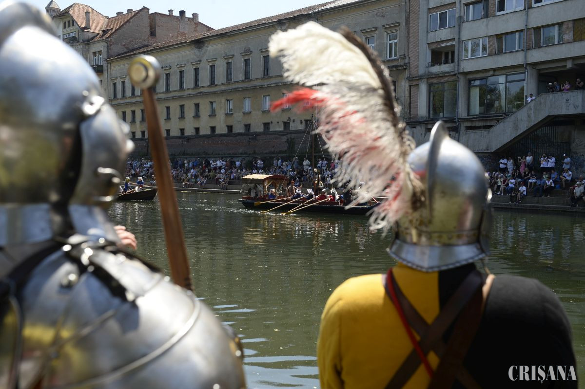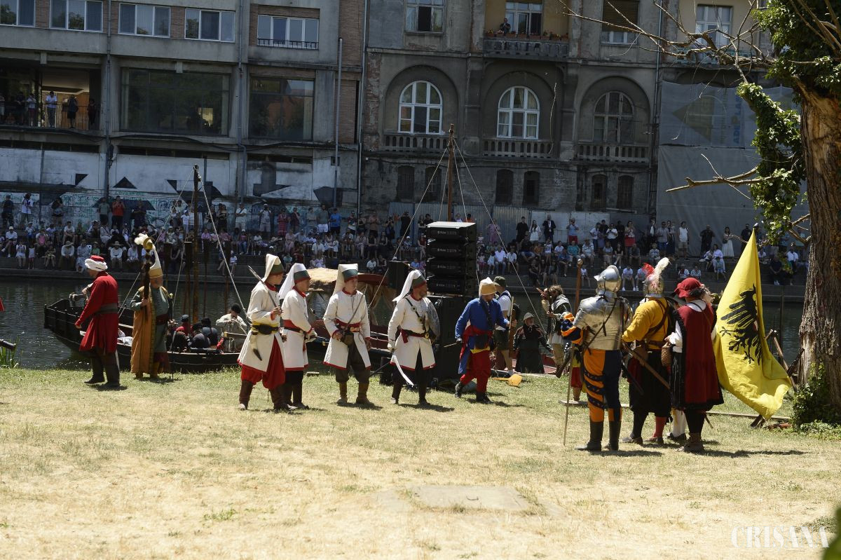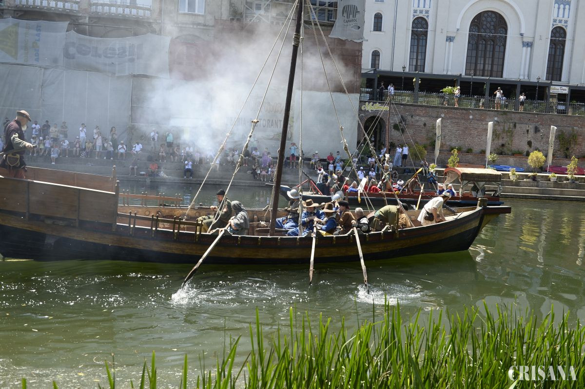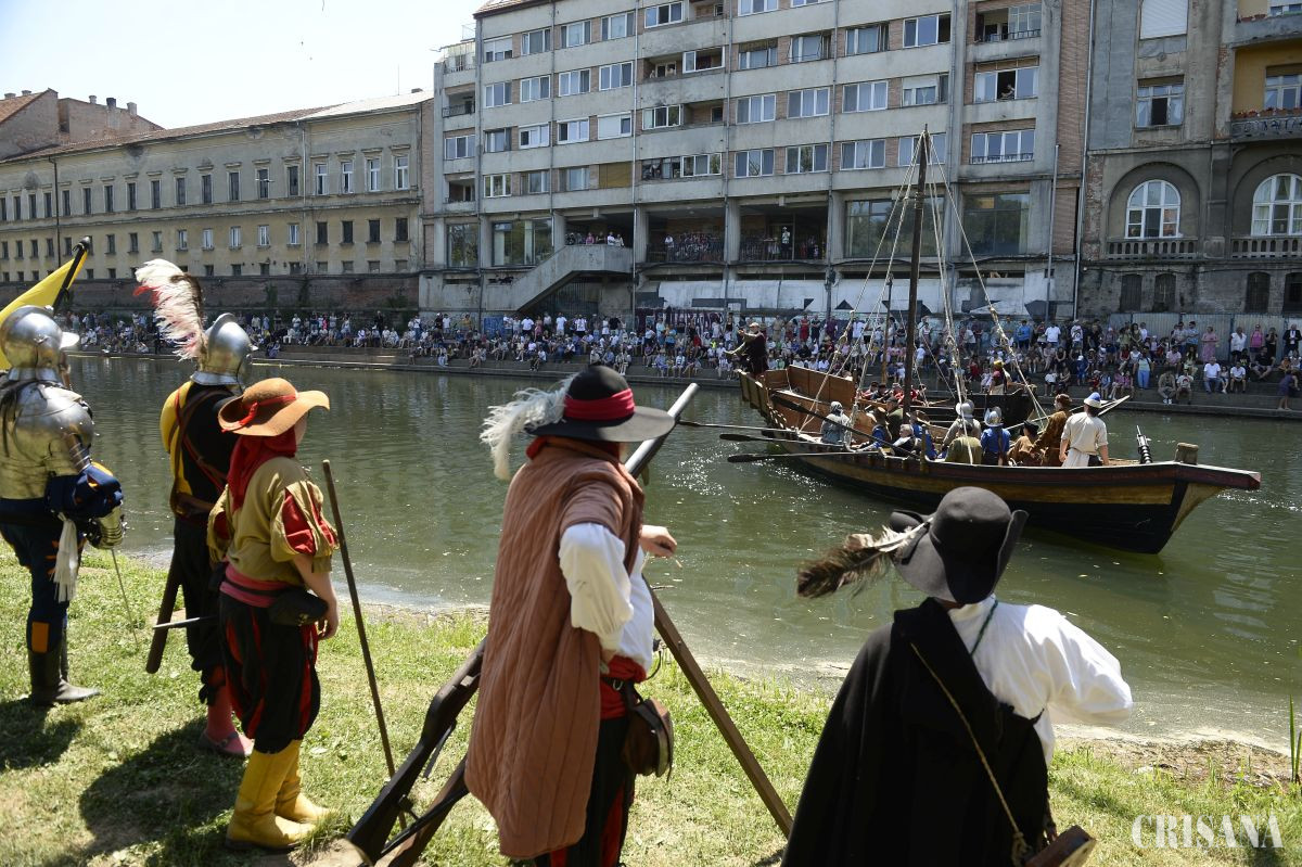 Sute de orădeni și turiști au asistat pe malurile Crișului Repede la reconstituirea unei confruntări navale. Bărci pline cu trupe otomane au atacat corăbii venețiene, în timp ce malurile râului erau apărate de brigăzi de muschetari.
