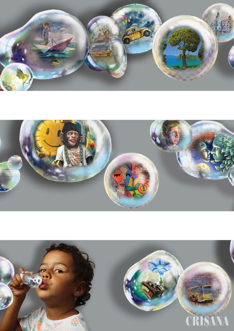 „În acest mural se remarcă trei copii suflând baloane de săpun, care se prefigurează în mod aleator pe toată suprafața peretelui. Aceste bule sunt văzute în plan metaforic ca o punte în spațiu/timp și un mijloc de teleportare a simțurilor spre lumile interioare pline de imaginație ale acestor copii. Proiectul are o profundă rădăcină în amintirile fericite ale copilăriei, vizând să trezească în privitori recunoașterea și identificarea cu aceste sentimente ludice. Abordarea artistică se apleacă spre redescoperirea copilului interior, încurajând privitorii să facă legătura cu propriile lor amintiri și vise”, explică Roxana Netea, coordonatoarea proiectului. Potrivit acesteia, un accent important este pus pe valorificarea relației dintre om și natură, evidențiată prin incluziunea spațiilor verzi în mural. Se oferă, astfel, privitorului o imagine completă, cu o perspectivă holistică, dar și cu invitația de a explora în detaliu mesajele ascunse. Tehnicile utilizate și materialele de calitate superioară asigură durabilitatea și rezistența lucrării.