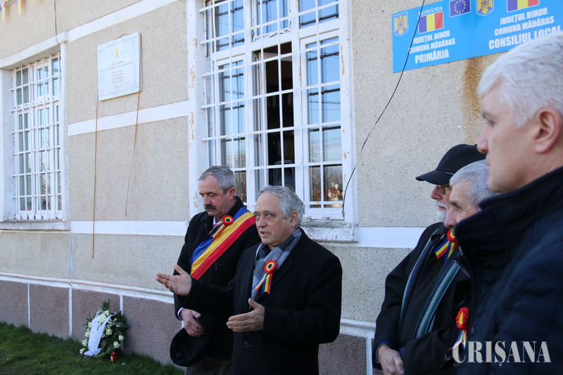 „Muzel Ţării Crişurilor şi Consiliul Judeţean Bihor încearcă, prin aceste proiecte, să readucă în memoria dumneavoastră numele delegaţilor bihoreni care au pornit spre Alba Iulia în iarna lui 1918”, a spus managerul MTC, Aurel Chiriac, la inaugurare. „Acest proiect care presupune realizarea unor plăci comemorative cu numele delegaţilor va fi prezent în 60 de localităţi din judeţul Bihor. Inaugurarea a avut loc în Mădăras şi pentru că dintre delegaţii de aici a făcut parte învăţătorul Teodor Neş, un intelectual de marcă al judeţului Bihor în perioada interbelică”, a spus Aurel Chiriac.