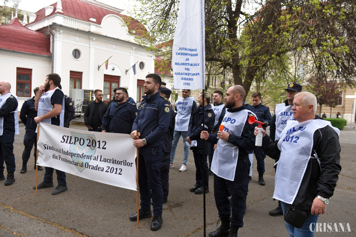 Polițiștii de penitenciar au ieșit, azi dimineaţă în stradă, în mai multe oraşe din ţară. Membrii Sindicatului Independent al Lucrătorilor din Penitenciarul Oradea au protestat, cerându-şi drepturile, în faţa Prefecturii Bihor.