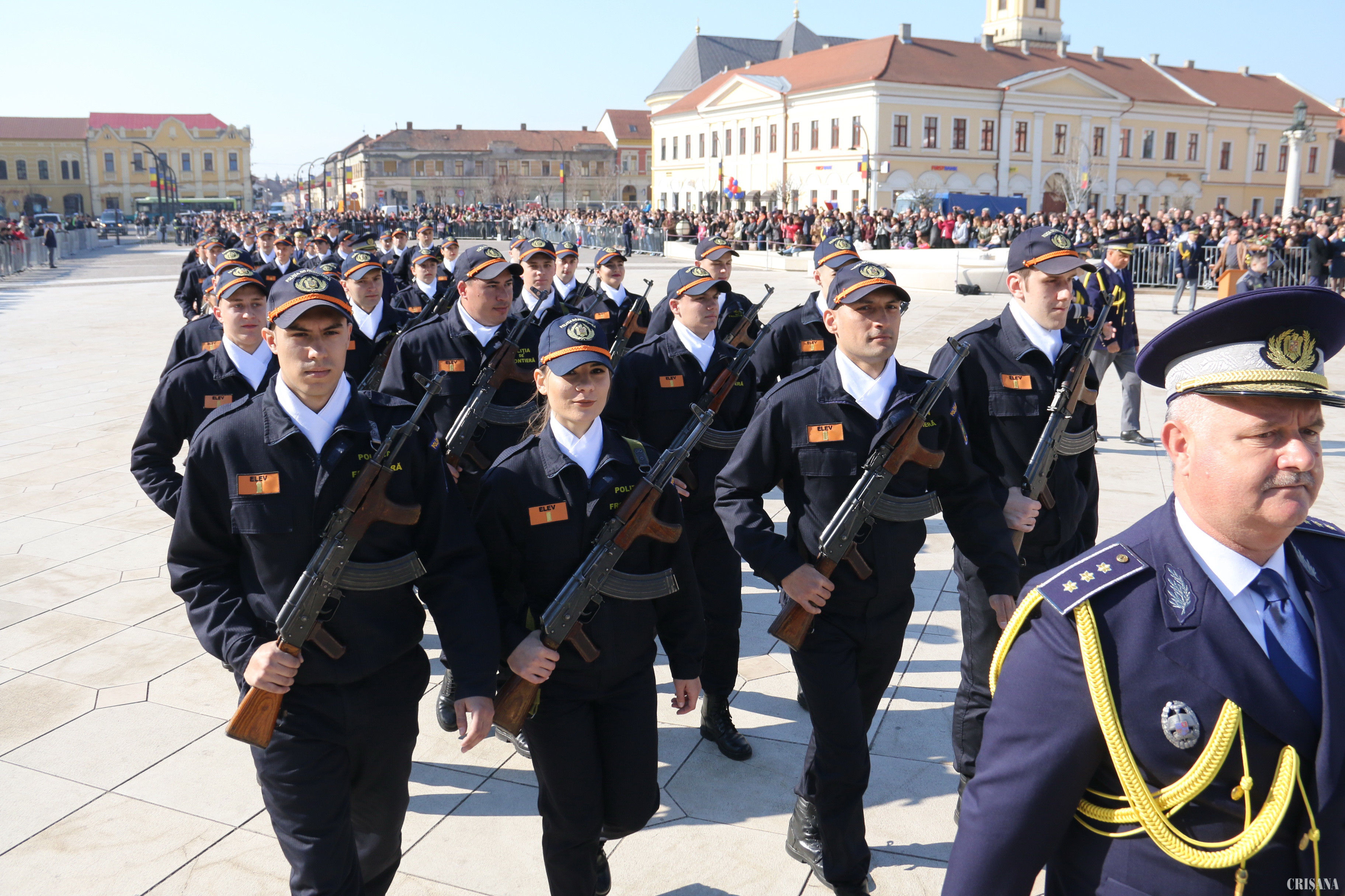 Piaţa Unirii din Oradea a găzduit, vineri, festivitatea de depunere a jurământului militar de către cea de a 30-a serie de elevi declaraţi admiși în urma susţinerii examenului din sesiunea ianuarie 2019 la şcoala „Avram Iancu”.