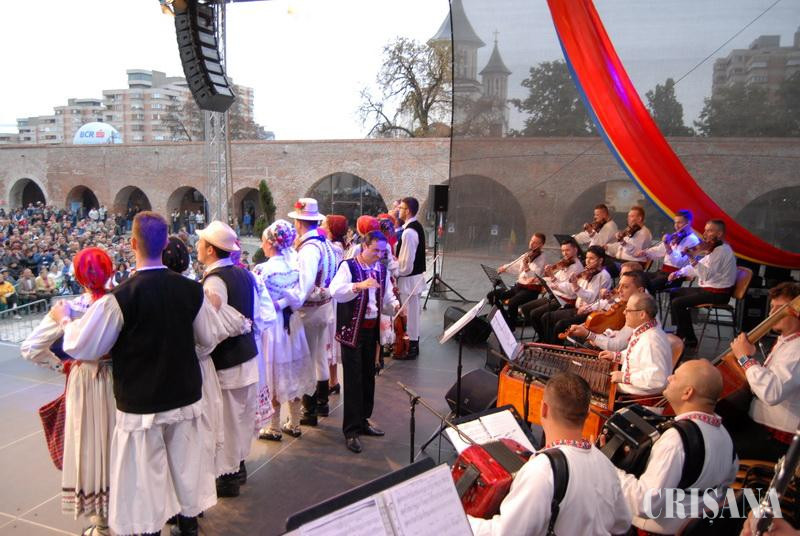 Organizatorii Toamnei Orădene au pregătit ieri o seară specială pentru iubitorii de folclor şi muzică autentică românească. Concertul de pe scena amenajată în incinta Cetăţii medievale a atras numeroşi iubitori ai tradiţiilor populare, care s-au bucurat de prezenţa şi vocile unor artişti desăvârşiţi. Evenimentul a fost prezentat de Iuliana Tutor, foarte iubită şi apreciată de către publicul orădean. Rând pe rând, pe scenă au urcat şi au impresionat prin vocile lor solişti renumiţi ca: Nicolae Furdui Iancu, Dinu Iancu Sălăjanu, Cristian Pomohaci, Dumitru Fărcaş, Florica Zaha, Maria Haiduc, Nicoleta Voica, Maria Sidea, Florentina şi Petre Giurgi, Cristian Fodor, Ovidiu Olari, Florin Maris Hinsu, Ionel Ban, Antonela Ferche Buțiu. De asemenea, pe scenă au evoluat Ansamblul Nuntaşii Bihorului şi Orchestra Rapsodia Bihoreană. Începând de azi, intrăm în ultimele zile ale Toamnei Orădene, care se vor încheia luni, 12 octombrie, când se va sărbători, prin ceremonial militar, Ziua Oradiei.