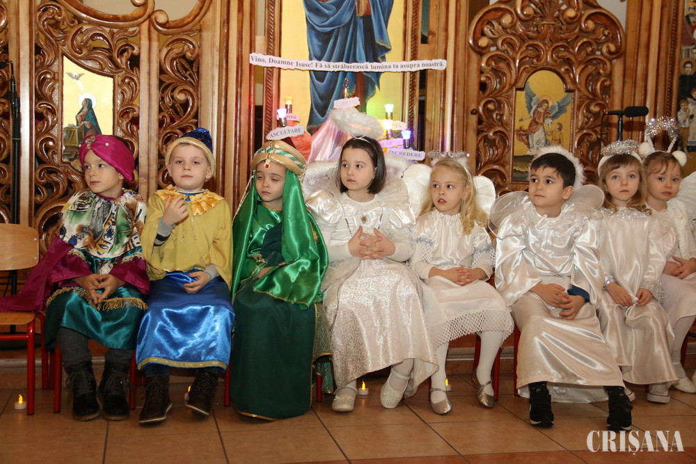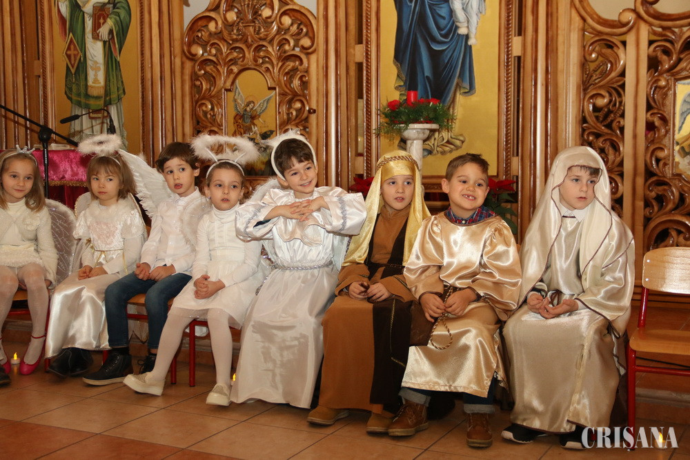 Copiii din grupa mare de la Grădinița Don Orione, Oradea, au prezentat marți, 18 decembrie, la Biserica Greco-Catolică „Tuturor Sfinților”, din cartierul Ioșia Nord, serbarea de Crăciun, sub atenta îndrumare a educatoarelor lor Diana Suciu şi Alexandra Miheş.