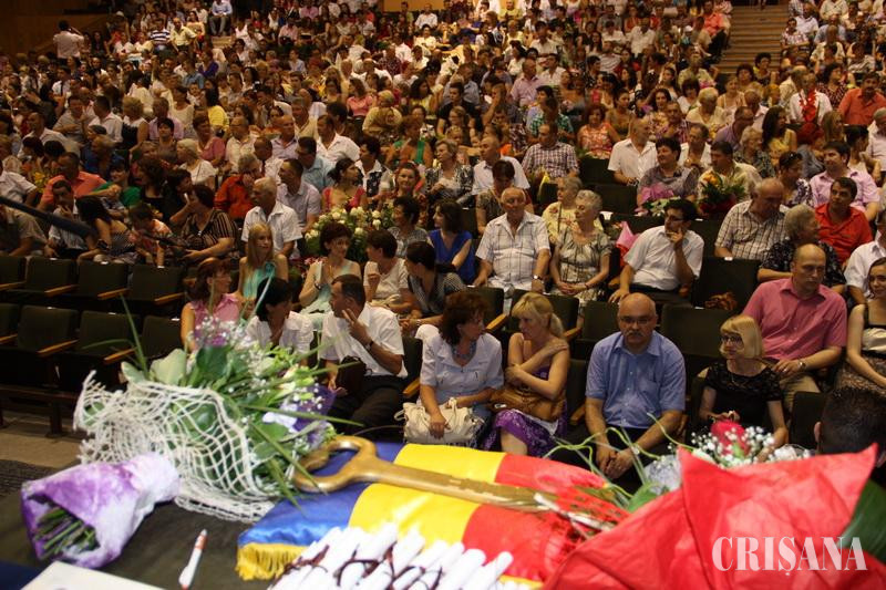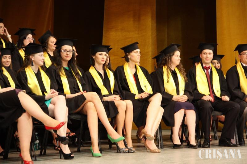 Sala Casei de Cultură a Sindicatelor a fost ieri plină ochi la cursul festiv al studenţilor de la specializarea Medicină din cadrul Facultăţii de Medicină şi Farmacie. Emoţiile au fost însemnate şi pentru sutele de părinţi, rude şi prieteni veniţi cu flori pentru a-i vedea pe absolvenţi cum îşi iau adio de la ceea ce a reprezentat munca lor de zi cu zi pentru mai mult de jumătate de deceniu. Echipaţi cu robe, tinerii au urcat timizi pe scena unde fuseseră aşezate scaune, special pentru ei. După 6 ani de studii, au absolvit 211 studenţi, 95 la medicină în limba română şi 116 la medicină în limba engleză. Momentul culminant al festivităţii de absolvire l-a constituit depunerea jurământului lui Hipocrate, care a avut loc după cel al predării cheii. "Din cele 100 de universităţi care există la nivel naţional doar 14 se pot lăuda că au învăţământ în domeniul sănătăţii, la noi, Facultatea de Medicină fiind una dintre cele mai puternice pe care le are Universitatea. Tocmai pentru că ştiu că nu este un lucru uşor să faci medicina, absolvenţii de astăzi au toată consideraţia noastră", a spus rectorul Universităţii din Oradea, Constantin Bungău.