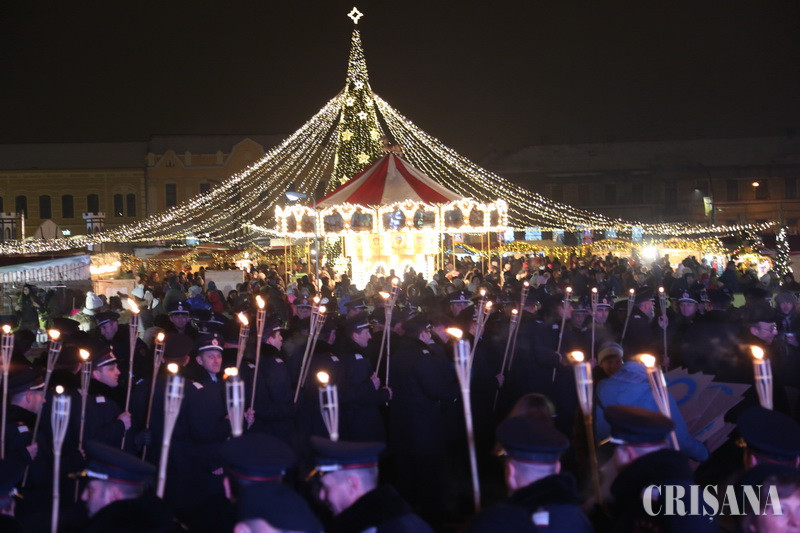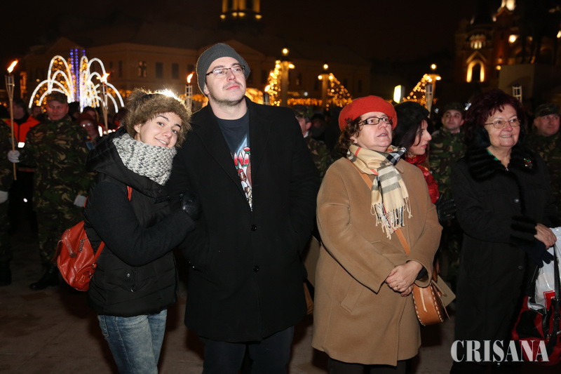 Între timp, în Piață au pătruns reprezentanții ISU Crișana care au format o inimă, cu torțe aprinse. A urmat apoi intonarea imnului compus de Ovidiu Iloc pe versurile Laviniei Georgescu Scripcaru, directorul Centrului de Transfuzie din Iaşi și susținut de un cor pregătit de Carmen Vasile de la Facultatea de Arte a Universității din Oradea. Pe ritmul bătăii unei inimi s-a cântat: „Noi suntem armata ce jertfa de sânge/ Ne-o dăm pentru viaţă, speranţă şi bine”. În timp ce s-a cântat toți cei din fața scenei au ridicat deasupra capului cartoanele cu contururi de inimi. Momentul a fost urmat de un miniconcert susținut de Yohanna Grace, soția premierului Dacian Cioloș.