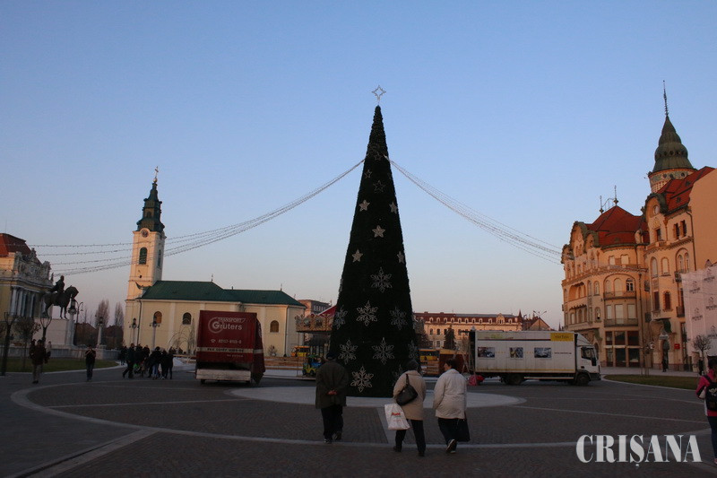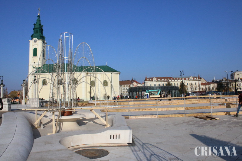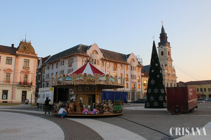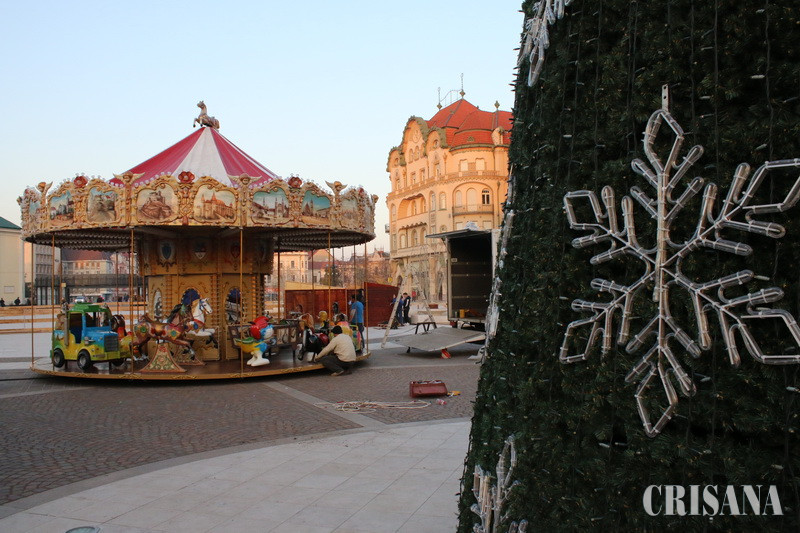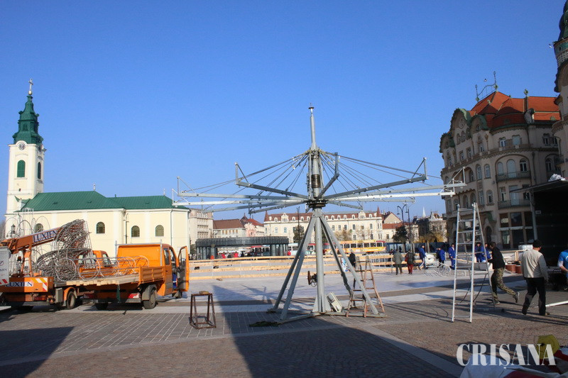Târg de Crăciun în Piața Unirii din Oradea - A început amenajarea patinoarului