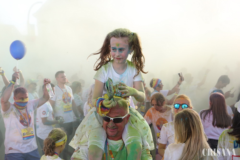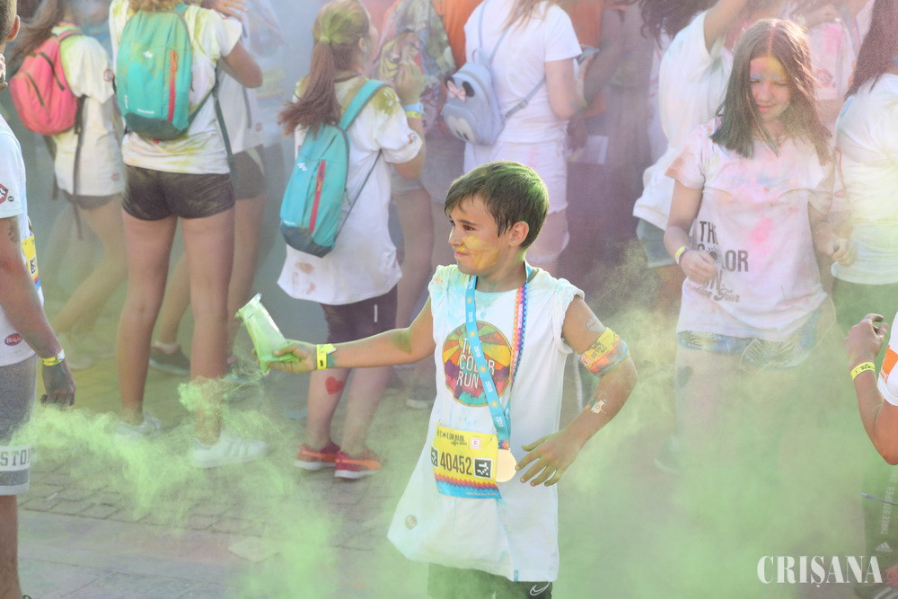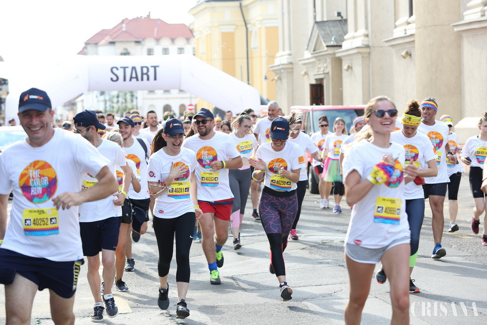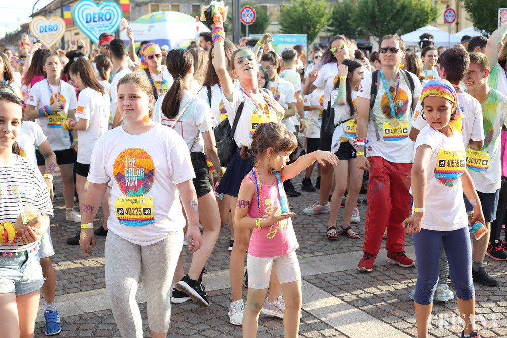 La The Color Run nu există limită de vârstră. Ca şi anul trecut, la start s-au aliniat familii cu copii, cupluri, tineri, adolescenţi şi preadolescenţi, dar şi vârstnici care au vrut să se bucure de sport într-o manieră inedită. Astfel, la la fiecare kilometru parcurs, participanții au trecut printr-o poartă de culoare, în care au fost vopsiți din cap până în picioare cu pudră colorată, 100% naturală, non-alergică, făcută pe bază de amidon, iar la finalul cursei, au trecut prin spumă. La ediția din acest an a evenimentului, accesul în zona de eveniment din Piața Unirii va fi permis de la ora 16.00, iar primul start a fost dat la ora 18.00. Au fost mai multe starturi succesive, la fiecare 4-5 minute, iar până la ora 18.20, au pornit în cursă toți participanții înscriși. Primul nor de pudră colorată a fost la ora 20.00, iar următorul la 20.30.La final, toți participanții au primit medalia cu magicul Unicorn, dar şi apă pentru rehidratare şi un pliculeţ de pudră colorată. Cel din urmă i-a ajutat să adauge o explozie de culori festivalului de muzică ce a urmat cursa.