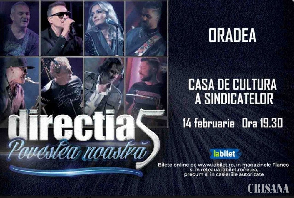 Turneul național Direcția 5, „Povestea noastră - 30 de ani” ajunge în 14 februarie, de la ora 19.30, la Casa de Cultură a Sindicatelor din Oradea.