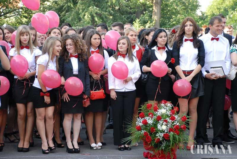 197 de elevi din clasele a XII-a şi a XIII-a au spus ieri adio anilor de liceu, în faţa profesorilor, a părinţilor şi a conduceri instituţiei. Elevii au fost frumos îmbrăcaţi, zîmbitori şi au purtat baloane de diferite culori, semn că odată cu absolvirea liceului se termină o etapă importantă din viaţa lor.