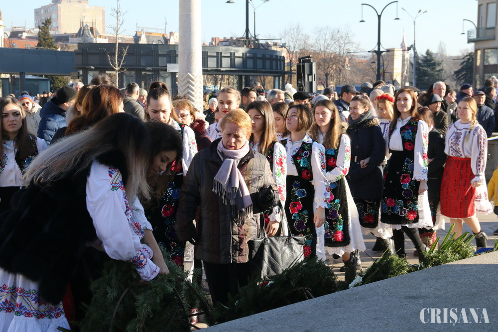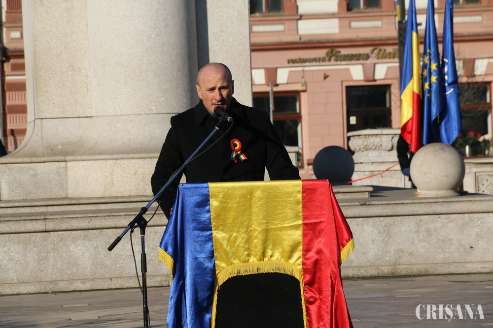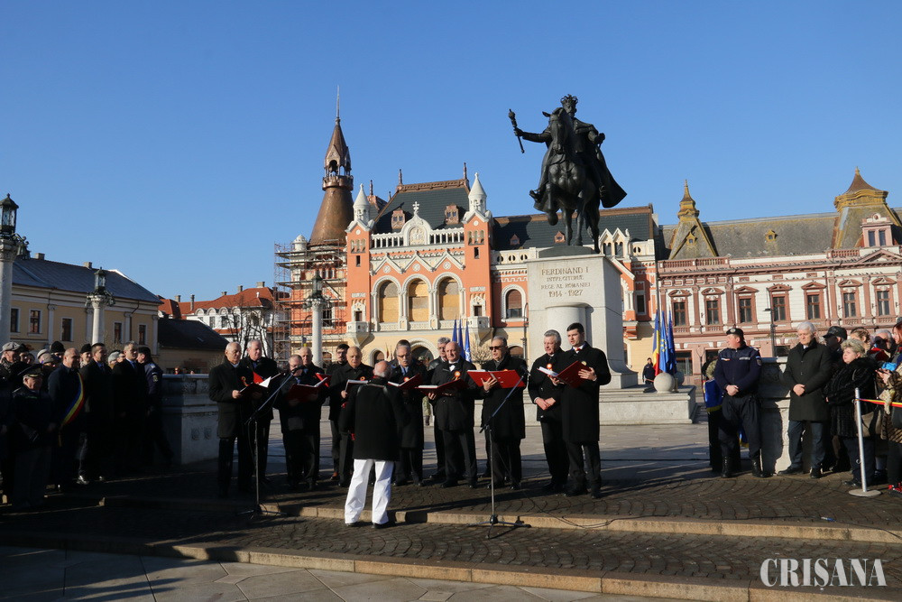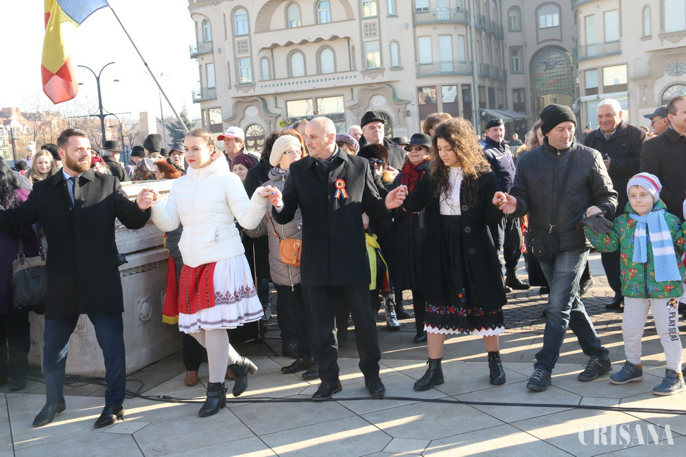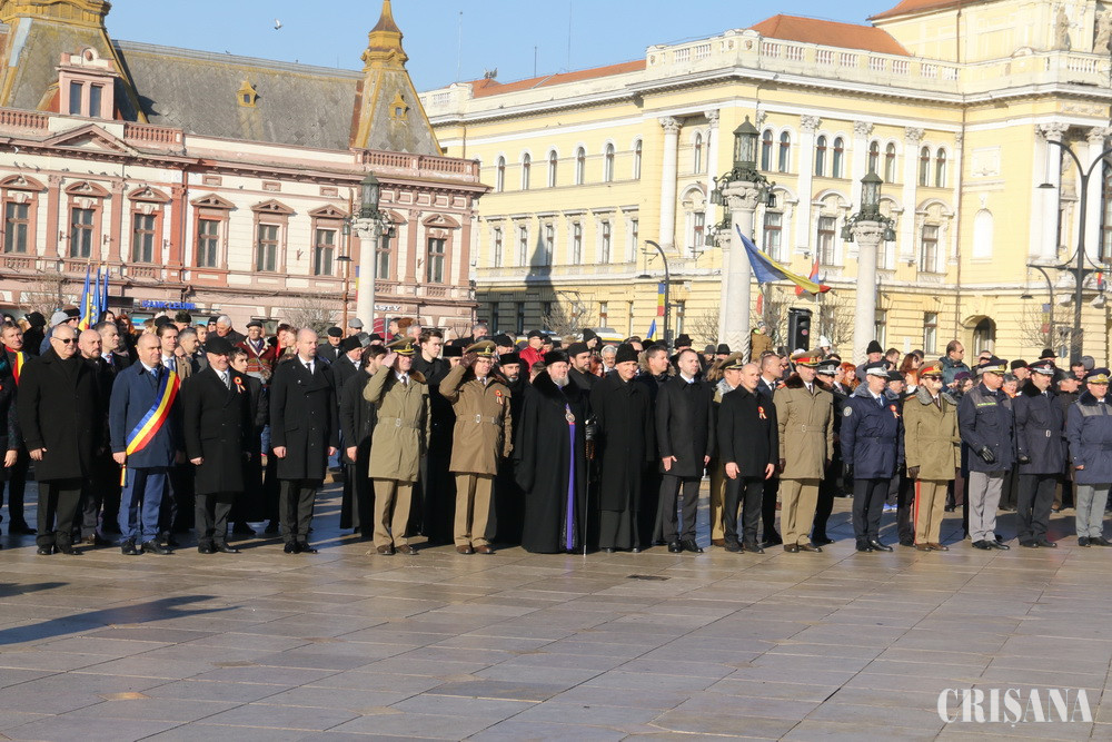 Evenimentul a început cu prezentarea onorului, salutul drapelului de luptă și intonarea imnului de stat al României de către Bianca Diana Popa, elevă la Liceul de Arte Oradea, Secția Canto popular. Evenimentul a continuat cu o slujbă Te Deum oficiată de preoții din structurile Sistemului Național de Securitate din cadrul Garnizoanei Oradea. Prefectul județului Bihor, Dumitru Țiplea a transmis mesajul primului-ministru al României Ludovic Orban, cu ocazia manifestărilor prilejuite de aniversarea a 161 de ani de la Unirea Principatelor Române. În continuare, prof. univ. dr. în istorie Gabriel Moisa a trecut în revistă contextul istoric, semnificația momentului de la 24 ianuarie 1859, dar și meritele de necontestat ale unei generații politice de excepție, care a știut ce să facă cu puterea politică pe care a deținut-o și care a construit ceea ce noi avem astăzi. "Faptul că marcăm pe tot teritoriul României ziua de 24 ianuarie 1859 este un lucru mai mult decât benefic pentru noi ca națiune. Momentul 24 ianuarie 1859 este un moment deosebit de important pentru istoria poporul nostru, este unul din acele momente esențiale care alături de alte momente istorice precum unirea sub Mihai Viteazu, Revoluția lui Tudor Vladimirescu, 1 Decembrie 1918, și de ce nu, Revoluția din decembrie 1989, ne definesc ca popor și ne adună mereu la un loc indiferent de opțiunile noastre culturale, ideologice sau de altă natură", a spus prof. univ. dr. în istorie Gabriel Moisa. În continuare a urmat un frumos recital de cântece patriotice susținut de Corul General Traian Moșoiu, după care a avut loc festivitatea depunerii de coroane și jerbe de flori. Festivitățile s-au încheiat cu defilarea detașamentului de onoare, onorul muzicii militare și „Hora Unirii", în care s-au prins mai mulți participanți la ceremonie, alături de dansatorii profesioniști de la Ansamblul Folcloric Bihorul.