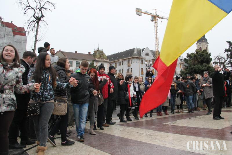Împlinirea a 156 de ani de la Unirea Principatelor Române a fost sărbătorită, la Oradea, printr-un ceremonial militar, dar şi printr-un program artistic care s-a încheiat cu prinderea în Hora Unirii a celor care au rezistat până la final.