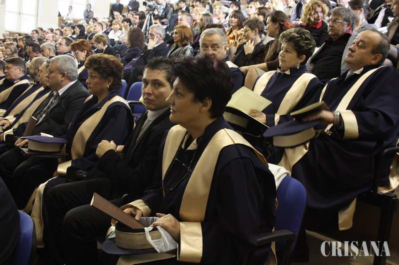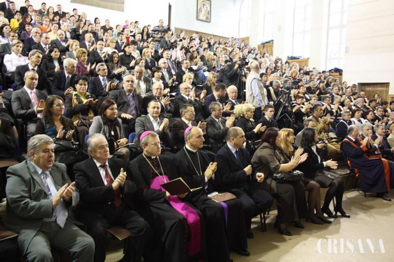 Într-o Aula Magna arhiplină, în primele rânduri au luat loc pentru audierea momentelor festive episcopul greco-catolic Virgil Bercea şi cel romano-catolic Bocskei Laszlo, lângă înalţii prelaţi luând loc şi primarul Ilie Bolojan. Episcopul ortodox Sofronie a lipsit. La eveniment a participat şi senatorul Petru Filip, fostul rector Teodor Maghiar, fostul director şi actuala directoare a Sucursalei BNR, Ioan Degău, respectiv Floare Floruţiu, toţi decanii celor 18 facultăţi ale Universităţii orădene, bancheri şi oameni de afaceri.