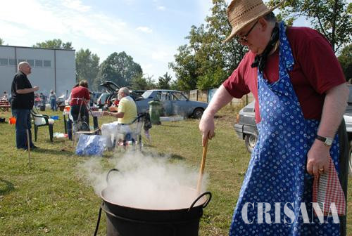 Cea de a XVI-a ediţie a "Toamnei pe Valea Ierului" a debutat, încă de joi seara, evenimentele organizate de Primăria Săcueni fiind dedicate veteranilor comunei. Într-un cadru festiv, au fost omagiate 64 de perechi din Cubulcut, Olosig, Cadea, Ciocaia, Sânnicolau de Munte şi Săcueni, care au sărbătorit "Nunta de aur" - 50 de ani de căsătorie -, înmânându-li-se câte 500 de lei, un buchet de flori, o sticlă de vin şi o diplomă de merit. Totodată, cu prilejul acestei noi ediţii a festivalului tradiţional de pe Valea Ierului, şi-a deschis porţile noul Muzeu din Săcueni, care va găzdui o serie de expoziţii. Un număr mare de participanţi a reuşit să atragă concursul de degustat pălincă, peste 50 de săteni bucurându-se de această competiţie ce a presupus degustarea a zeci de sortimente de ţuică. Un moment deosebit s-a consumat sâmbătă, cu prilejul concursului de gătit. În competiţie s-au înscris 15 echipe din Săcueni, Boiu, Cluj-Napoca, Sâniob, dar şi din Ungaria. Dacă în primele ediţii, în competiţie era înscris doar tradiţionalul bogracs, acum participanţii au dorit să pregătească reţete deosebite, de la paprikas de somon cu găluşte la gulaş ceangăiesc ori tocăniţe de vită de stepă. Printre participanţi s-a numărat şi Corul bărbaţilor din Săcueni, în frunte cu dirijorul Karancsi Bella, Consiliul Elevilor din Săcueni, PSD Săcueni, Partidul Civic Maghiar - Filiala Bihor şi Filiala Cluj, dar şi patru echipe din Nyiradony şi una din Hajduszoboszlo. "Sunt vameş de meserie, dar am câştigat o serie de competiţii internaţionale de bucătari amatori. Pregătesc o specialitate din peşte, paprikas de somon cu găluşte. Peştele a fost în prelabil prăjit", ne-a declarat Nagy Gyula, din Nyiradony. Sub îndrumararea dirijorului, Karancsi Bella, Corul bărbătesc din Săcueni a reuşit să atragă atenţia nu numai prin vocile membrilor, dar şi prin talentul acestora la bucătărie. "Am pregătit un bogracs din ciolan şi copite. Este o reţetă secretă ştiută doar de membrii corului", ne-a declarat bucătarul ing. Szabo Tiberiu, membru al corului. După două-trei ore, bucatele pregătite de concurenţi au fost supuse exigenţelor unui juriu. Printre manifestările pregătite de organizatori s-au numărat competiţiile sportive de tenis, fotbal, demonstraţiile cu arcul, dar şi cele de karate.