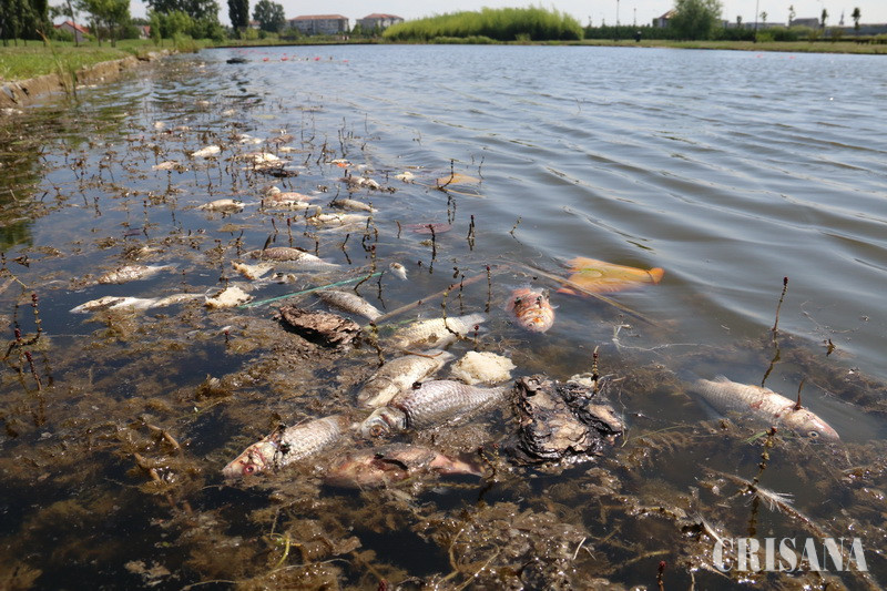 O documentare făcută miercuri, 28 iunie, la fața locului, ne-a oferit imaginea unui lac suprapopulat, cu pești de toate speciile, cel mai spectaculos fiind crapul Koi, care, la maturitate sexuală, ajunge la vârsta de 18-36 de luni. Este vorba despre un peşte rezistent, dar care are și câteva pretenţii: habitat de lux şi apă curată, de calitate. În contrast cu imaginea pe care o oferă acești pești spectaculoși, pe marginea lacului, se pot observa zeci de carași morți, unii formând chiar un grup de 60 de bucăți, din care muștele se hrănesc cu nesaț, temperatura extrem de ridicată pentru această perioadă contribuind decisiv la degradarea acestora. Așadar, peisajul de care au avut parte doi bunici, aflați miercuri la plimbare cu nepoțelele lor, nu a fost unul foarte plăcut. Senzația de dezgust pe care ți-o creează această imagine dezolantă o mai atenuează cele câteva broscuțe țestoase care își duc veacul în acest lac, nefiind deranjate de apa murdară.