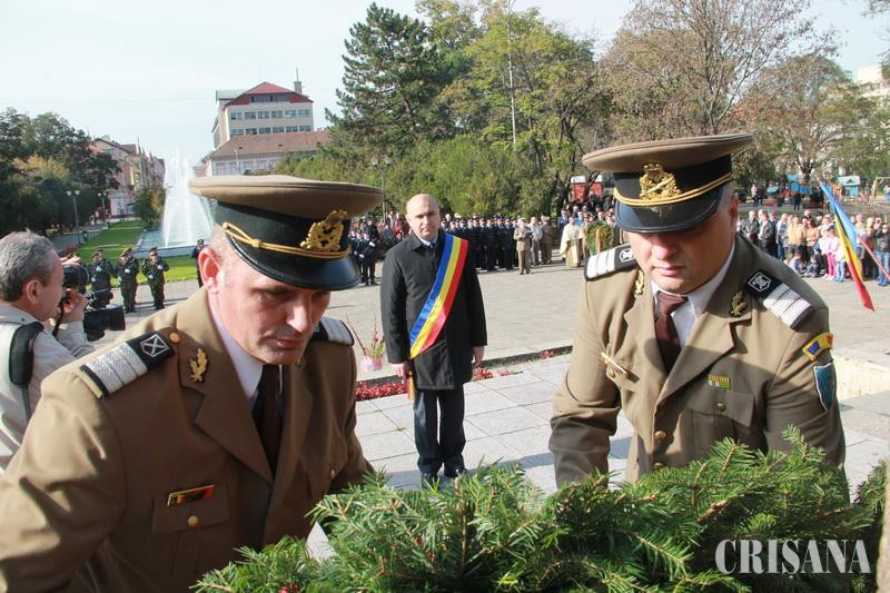 Evenimentul a început cu întâmpinarea oficilităţilor, a prefectului Claudiu Pop şi a locţiitorului comandantului Garnizoanei, lt. col. Ioan Pop. A urmat momentul salutului drapelului de luptă şi ocuparea locului în dispozitiv, după care s-a intonat Imnul Naţional al României. Momentul religios a fost oficiat de preoţii din structurile de apărare, ordine publică şi siguranţă naţională a Garnizoanei Oradea. În încheierea acestui moment, preotul Mircea Ioniţă a adus cuvinte de laudă Armatei Române, menţionând că aceasta „are un suflet nobil şi curat pentru că face un lucru minunat şi măreţ pentru ţară". Despre însemnătatea evenimentului a vorbit istoricul militar, colonel rezervă, dr. Constantin Moşincat. Acesta a amintit câteva aspecte istorice care au făcut posibilă comemorarea zilei Armatei Române.