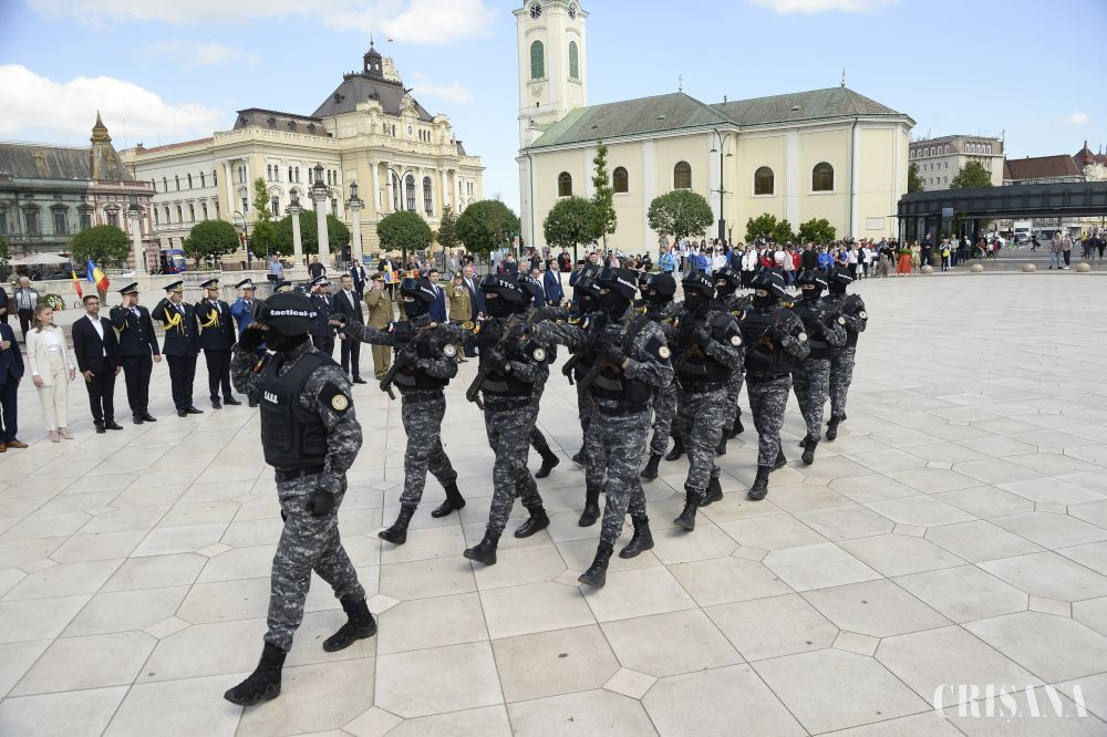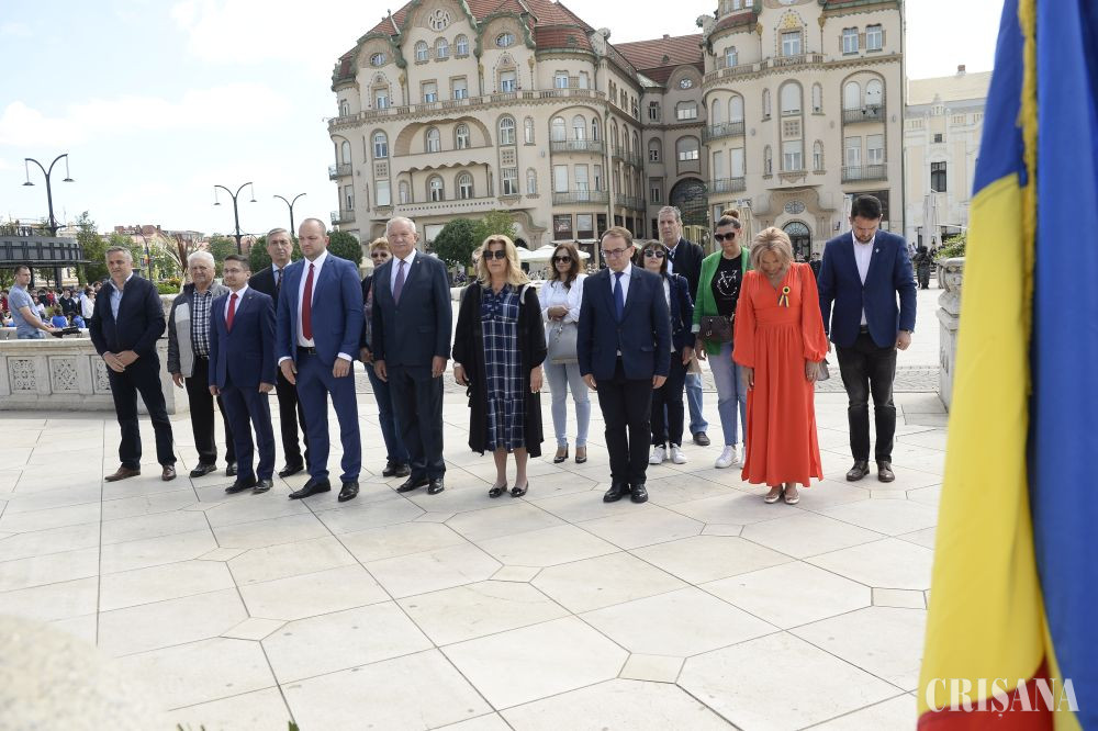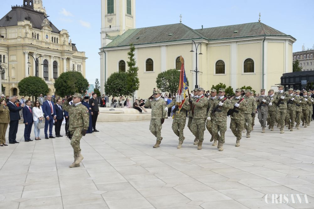 Un ceremonial militar a fost organizat, vineri, în Piaţa Unirii din Oradea, prilejuit de Ziua Independenței Naționale a României, Ziua Victoriei Coaliției Națiunilor Unite în Cel De-al Doilea Război Mondial și Ziua Uniunii Europene.