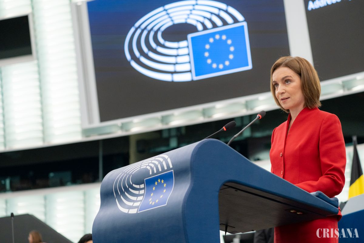 „Este o mare onoare să vorbesc în această casă a democrației în numele oamenilor din Moldova. Astăzi, aș vrea să mă axez pe amenințările în creștere la adresa democrațiilor noastre și pe cum le putem apăra împreună. Pentru că niciuna nu se poate apăra singură. O voi face prin prisma Moldovei. Pentru că stabilitatea noastră este stabilitatea dumneavoastră, pacea noastră este și pacea Europei'', a spus șefa statului moldovean în fața eurodeputaților, într-un discurs rostit în limba engleză.