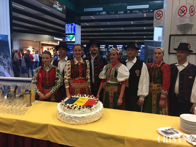 Ansamblul de dans profesionist „Nagyvárad” a susținut câteva dansuri specifice zonei noastre, de aproximativ 15 minute. Pentru reușita acestui program trebuie evidențiată colaborarea cu RyanAir, cu directorul Aeroportului din Bergamo, Giacomo Cattaneo, cât și cu reprezentanții serviciului de pază și securitate. După tăierea tortului, având culorile tricolorului, fiecare călător a primit câte o felie. De asemenea, au fost împărțite felicitări pentru că sunt călători ai acestei curse de Milano - Oradea, broșuri și câte o ciocolată de casă împachetată în harta Bihorului cu principalele destinații. Președintele Pásztor Sándor a precizat că „această cursă Oradea - Milano nu trebuie să fie un scop în sine, ci un instrument util pentru a dezvolta Țara Bihorului. De aceasta suntem acum aici, într-un de tur de forță, Târgul de oferă posibilitatea de a ne promova turistic și cultural, iar în materialul de marți seara, de la Milano, voi prezenta parcurile industriale ca principal punct de atracție pentru investitori și parteneriate economice”.