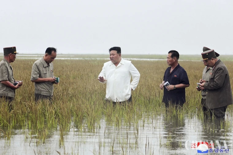 Filmările lor îl arată pe Kim într-un câmp de orez inundat din zona Nampho, în apă până la genunchi, dându-le instrucţiuni unor oficiali cu aspect sever şi care iau notiţe în timp ce stau la rândul lor în picioare în apă. Daunele „nu au fost o calamitate din cauza dezastrelor naturale, ci un dezastru uman din cauza iresponsabilităţii (...) leneşilor", a spus el, conform agenţiei oficiale de presă KCNA.