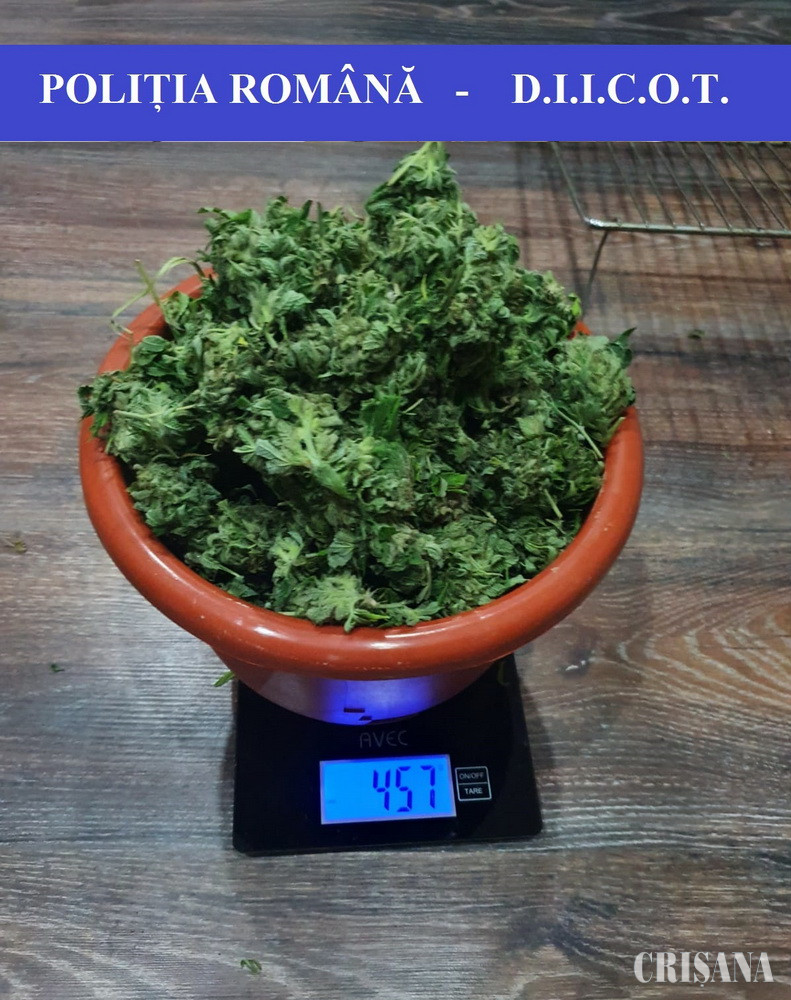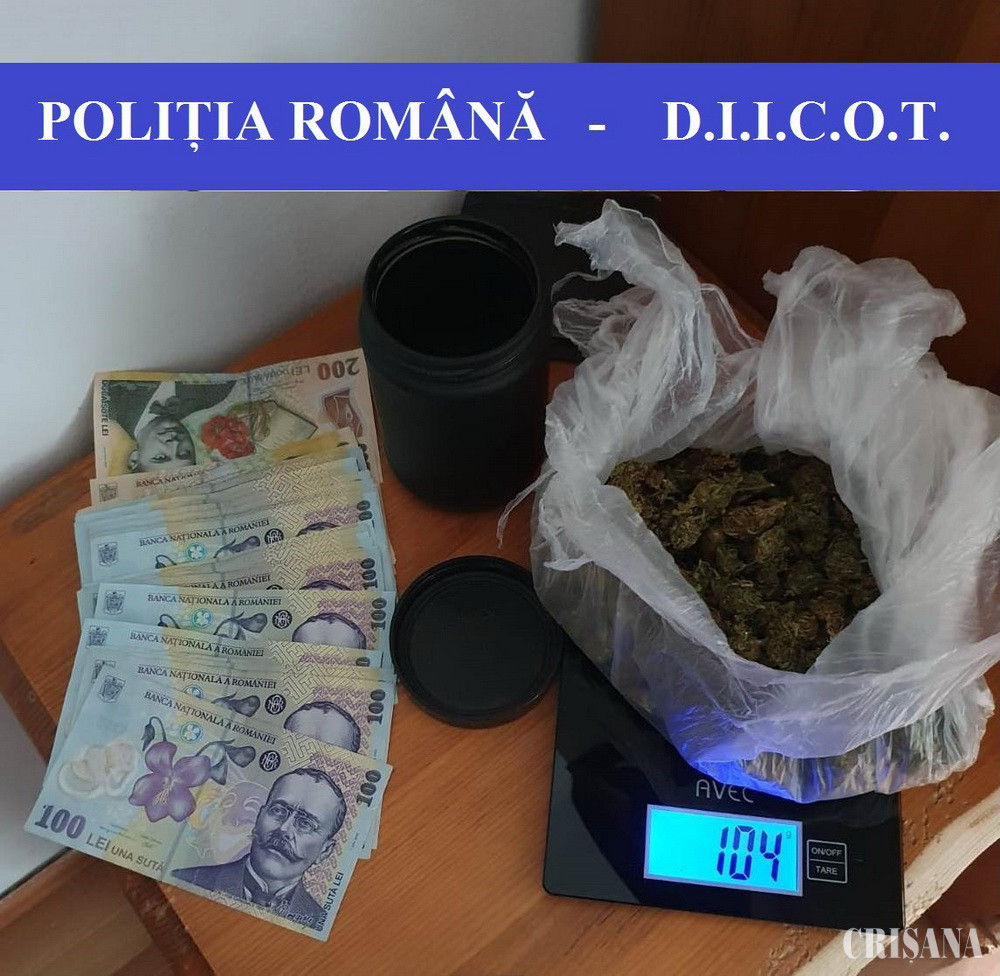 Luni, 26 octombrie, în localitatea Aleșd, polițiștii Brigăzii de Combatere a Criminalității Organizate Oradea – Serviciul Antidrog și procurorii D.I.I.C.O.T. – S.T. Oradea au prins în flagrant delict un bărbat, de 26 de ani, bănuit de trafic intern de droguri de risc. Acesta a fost depistat în timp ce ar fi primit o sumă de bani, care ar fi reprezentat contravaloarea unei cantități de 100 de grame de cannabis, vândută anterior și, în același timp, încercând să valorifice alte 105 grame de cannabis. În urma efectuării a două percheziții domiciliare, în aceeași zi, în localitatea Aleșd, polițiștii au descoperit și ridicat 517 grame de cannabis, o instalație artizanală de cultivare și uscare a cannabisului indoor, un aparat de mărunțit, un cântar de mare precizie, mai multe semințe de cannabis, precum și 18.200 de lei.