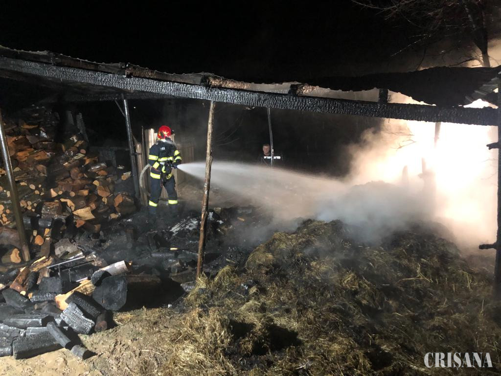Pentru gestionarea evenimentului, la fața locului au fost mobilizate cu operativitate, trei echipaje de pompieri militari din cadrul Stației Ștei cu două autospeciale de stingere și cu ambulanța de tip B2 a subunității. Incendiul, care se manifesta generalizat la o magazie din cadrul gospodăriei, a fost localizat și lichidat în aproximativ o oră și 20 de minute, pompierii reușind să salveze atât casa, care avea acoperiș comun cu construcția în flăcări, cât și o anexă situată în imediata proximitate. În urma incendiului au ars magazia construită pe o suprafață de circa 50 metri pătrați, aproximativ 60 de baloți de fân, un metru cub de lemne de foc și o motocositoare. Cercetările efectuate au indicat faptul că evenimentul a fost, cel mai probabil, produs de jar sau scântei purtate de vânt și căzute pe materiale combustibile.