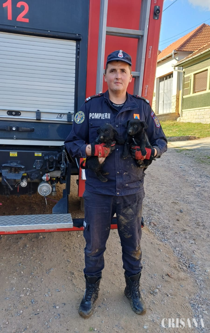 Pompierii din Beiuș au salvat, marți, 4 noiembrie, doi pui de câine dintr-o rețea de canalizare din localitatea Prisaca, comuna Uileacu de Beiuș.