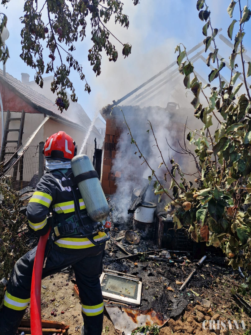 În urma apelului care sesiza producerea evenimentului, Inspectoratul pentru Situații de Urgență „Crișana” al județului Bihor a mobilizat operativ la adresa indicată patru echipaje de pompieri militari din cadrul Detașamentului Salonta, cu trei autospeciale de stingere și ambulanța SMURD a subunității. Ajunși la locul intervenției, pompierii au constatat că incendiul se manifesta violent la acoperișul unei anexe și al unei terase lipite de aceasta, flăcările amenințând să se extindă la casa învecinată, aflată la circa un metru de focare. Echipajele de pompieri au acționat pentru localizarea și lichidarea focarelor, respectiv pentru evacuarea mobilierului și a aparatelor electrocasnice din anexa al cărei acoperiș era cuprins de flăcări, reușind să salveze bunurile din interiorul clădirii și casa aflată în imediata proximitate. Cercetările efectuate au indicat faptul că evenimentul a fost provocat, cel mai probabil, de coșul de fum (amplasat necorespunzător față de materialele combustibile) al sobei lăsate în funcțiune nesupravegheată, pe terasa lipită de anexă. În urma incendiului, au ars acoperișul anexei și al terasei, pe o suprafață de circa 60 de metri pătrați. Din fericire, nu au existat persoane rănite.