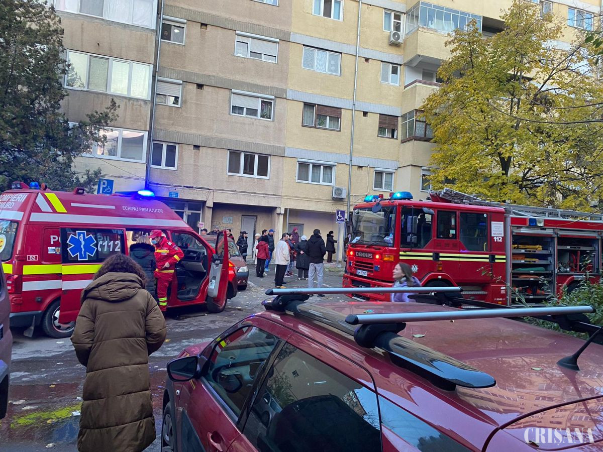 Pompierii orădeni au evacuat locatari dintr-un bloc cu nouă etaje folosind scara exterioară a autospecialei de lucru la înălțime, stingând totodată un incendiu izbucnit la etajul cinci.