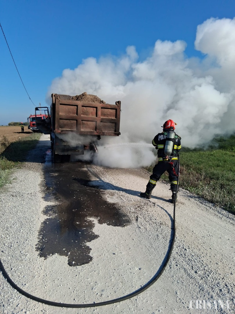 IUn incendiu a izbucnit vineri, 17 octombrie, la o autobasculantă aflată în mers pe un drum comunal din localitatea Mărțihaz, comuna Mădăraș.