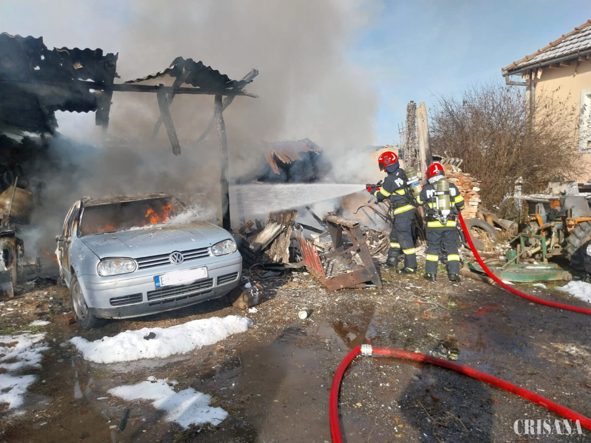 Azi, 25 noiembrie, în jurul orei 11.50, în urma unui apel primit prin Sistemul Unic 112, care semnala producerea evenimentului, Inspectoratul pentru Situații de Urgență „Crișana” al județului Bihor a mobilizat imediat, la adresa indicată de apelant, trei echipaje de pompieri militari din cadrul Stației Aleșd, cu două autospeciale de stingere și cu ambulanța SMURD a subunității. În momentul sosirii pompierilor la fața locului, ardea în întregime o magazie din lemn, flăcările amenințând să se extindă la un șopron lipit de construcția afectată de incendiu și la locuința situată în imediata proximitate a focarelor. Pompierii militari au localizat și lichidat incendiul în aproximativ 20 minute, salvând cele două construcții expuse riscului de incendiere, precum și circa 20 de tone de fân depozitate în șopron. Ca urmare a producerii evenimentului, generat, cel mai probabil, de un acumulator electric defect, au ars magazia din lemn și bunuri depozitate în interiorul acesteia, inclusiv un autoturism aflat la reparat în construcția respectivă.