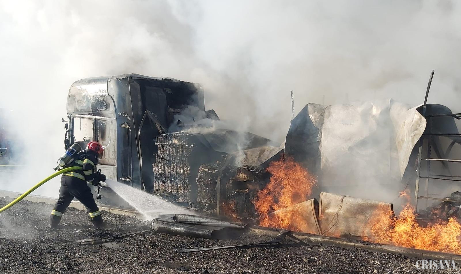 Potrivit lt. Col. Camelia Roșca, purtătorul de cuvânt al ISU Bihor, pentru gestionarea evenimentului, la adresa indicată de apelantul numărului unic 112, au fost mobilizate cu operativitate, echipajele de pompieri militari din cadrul Detașamentului 2 Oradea, cu două autospeciale de stingere, o autospecială tip Abroll și cu ambulanța SMURD a subunității. „La sosirea forțelor de intervenție, ardeau violent și generalizat un cap tractor și semiremorca acestuia, existând un risc ridicat de propagare a incendiului la o hală de depozitare mărfuri, situată la mai puțin de trei metri de focare și la alte TIR-uri aflate în imediata proximitate”, a precizat Camelia Roșca. Pompierii militari au acționat concomitent pentru localizarea și lichidarea incendiului, respectiv pentru protejarea autovehiculelor din apropiere, reușind, în aproximativ 30 de minute, să lichideze focarele și să salveze din calea flăcărilor, o hală, trei TIR-uri și un ATV. În urma evenimentului, a cărui cauză probabilă a constituit-o un scurtcircuit, au ars capul tractor și semiremorca încărcată cu 7 paleți de flori și 2 paleți de țigări. Din fericire, nu au existat persoane rănite.