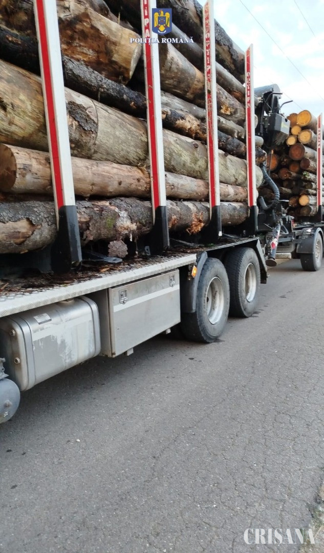Potrivit IPJ Bihor, la data de 21 iulie a.c., la ora 20.40, pe drumul comunal 225, în localitatea Pocioveliște, polițiștii Secției nr.2 de Poliție Rurală Beiuș au depistat în trafic un bărbat de 48 de ani, din comuna Roșia, în timp ce transporta, cu un autotren cu remorcă, 46,56 de metri cubi de material lemnos, specia molid, fără a deține documente specifice de transport.