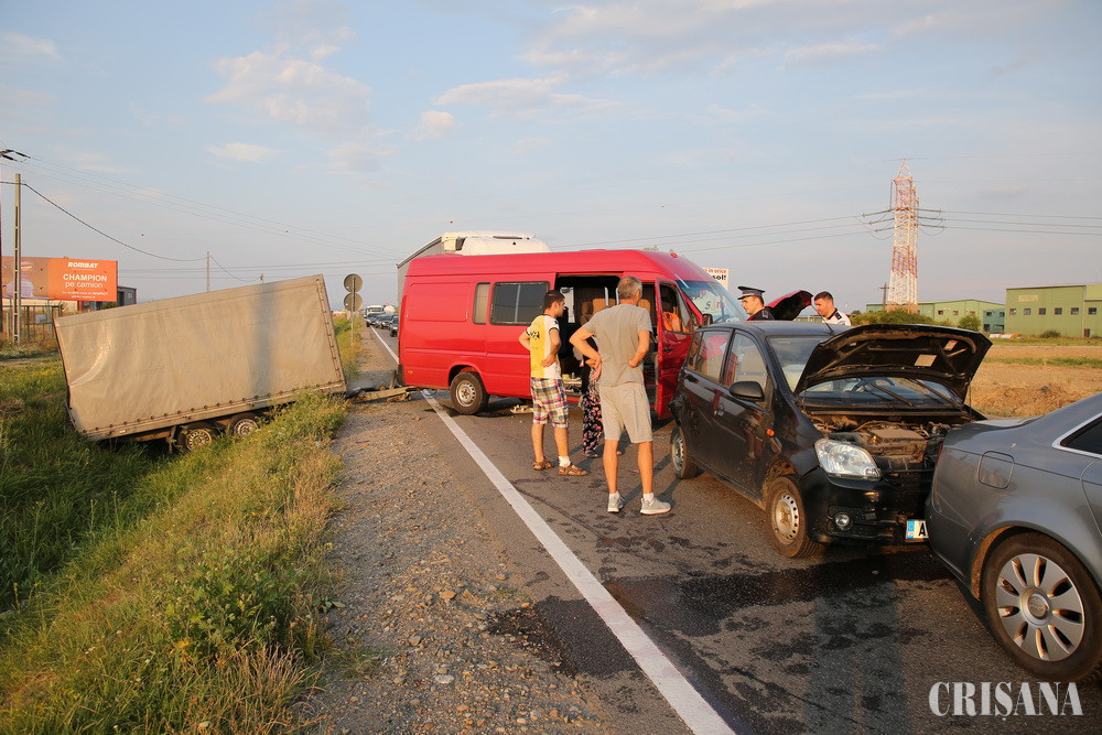 Accidentul s-a produs duminică seara, în jurul orei 19.36, implicate fiind două autoturisme, un microbuz şi un autocamion. La faţa locului a fost mobilizat un echipaj de pompieri din cadrul Detaşamentului 1 de pompieri Oradea şi echipajul de Terapie Intensivă al SMURD. Opt persoane, şoferi şi pasageri ai vehiculelor au fost evaluate de medici. Din fericire, nimeni nu a fost rănit. Traficul în zonă a fost însă îngreunat, circulându-se alternativ până când salvatorii s-au asigurat că toţi cei implicaţi sunt în afara pericolului. Cel mai probabil, coliziunea s-a produs pe fondul nerespectării distanţei regulamentare. Pentru că nicio victimă nu a avut nevoie de îngrijiri medicale, evenimentul a fost înregistrat drept tamponare.