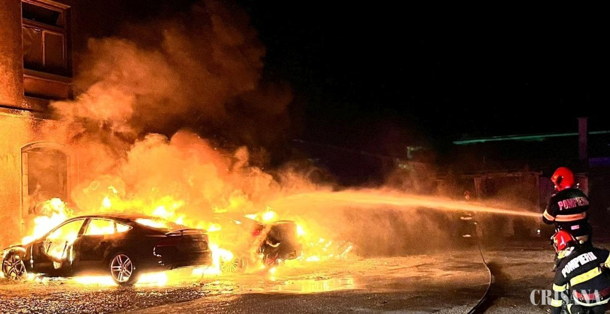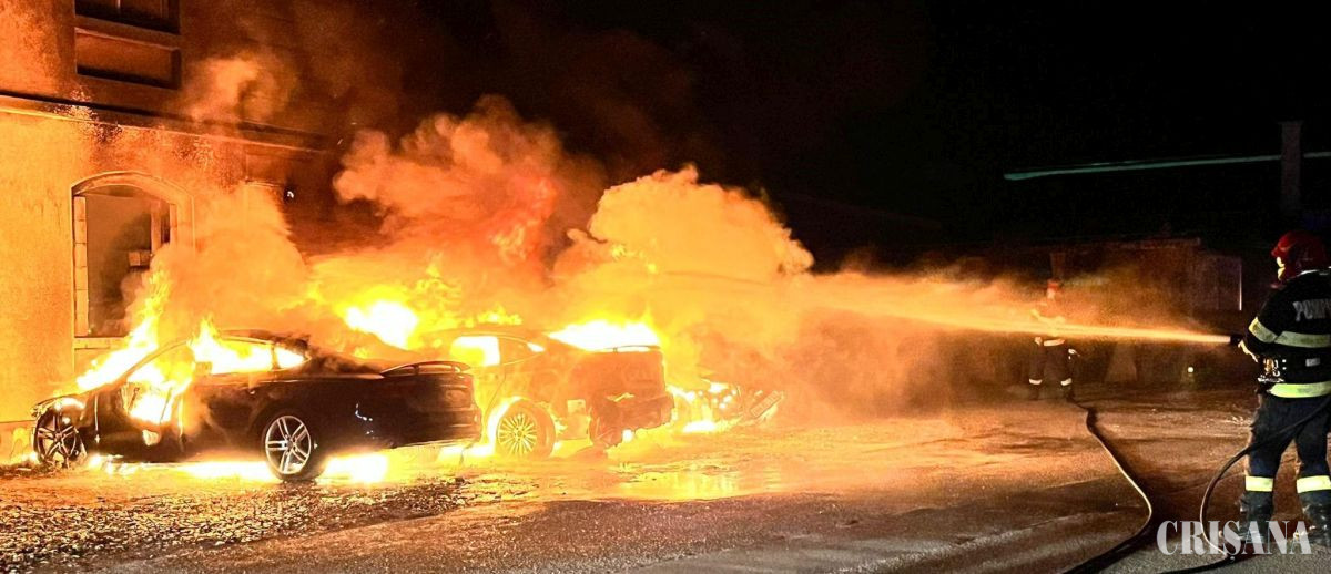 Trei mașini au fost distruse în urma unui incendiu de amploare, care amenința să cuprindă o întreagă clădire aflată la mai puțin de jumătate de metru de focare, pe strada Cuza Vodă din localitatea Ștei.