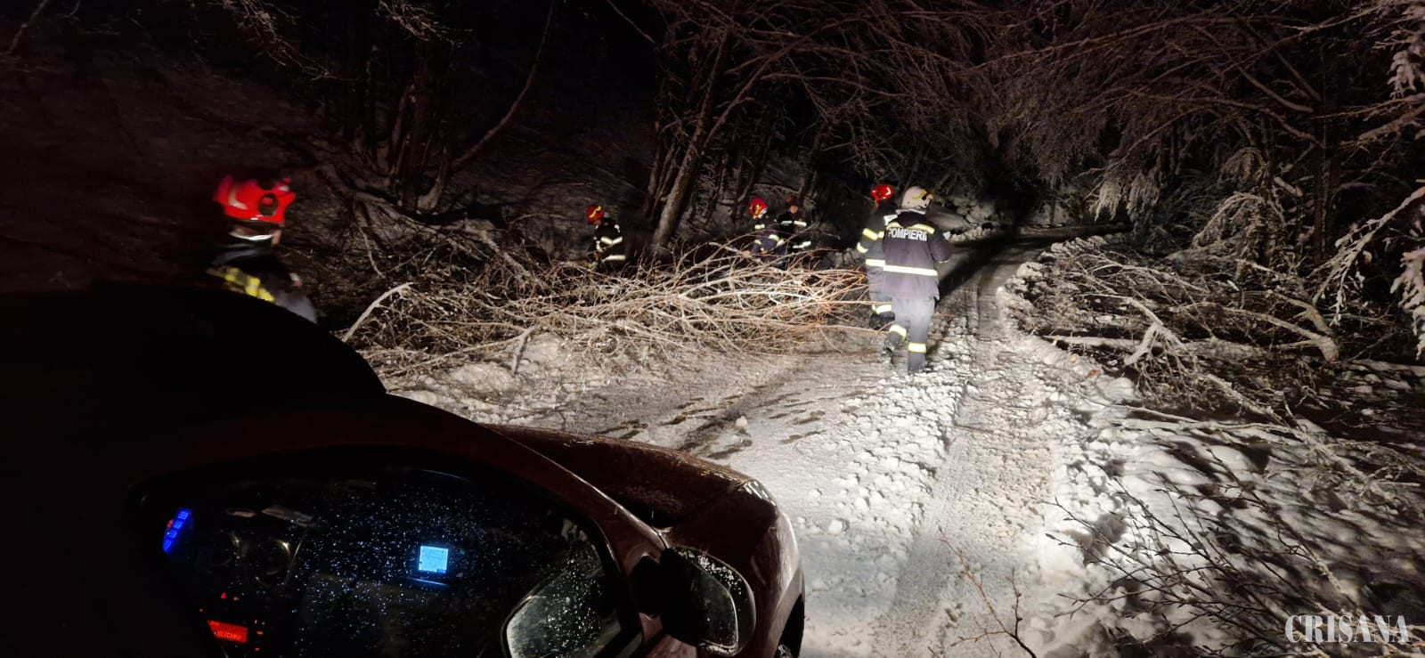 Timp de aproape 12 ore, în noaptea de vineri spre sâmbătă, pompierii militari bihoreni s-au chinuit să înlăturare copacii prăbușiți pe carosabil din cauza căderilor masive de zăpadă în zona Pădurea Neagră.