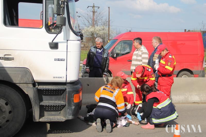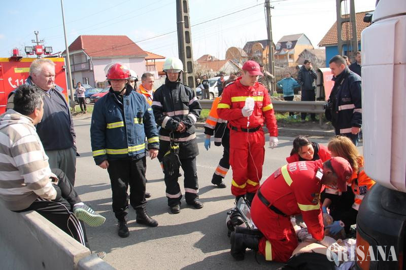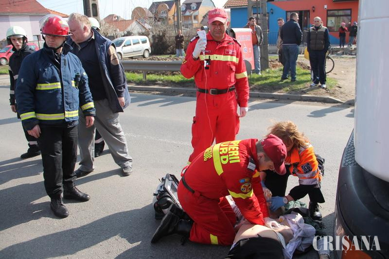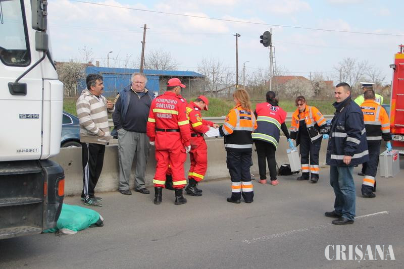 Şoferul autocamionului, Tarsoly Zoltan din Biharkeresztes, a oprit abia la 20 de metri după impact, târând corpul femeii pe carosabil. Potrivit martorilor şi poliţiştilor, accidentul s-a produs pentru că şoferul nu a respectat semnificaţia culorii roşii a semaforului electric. Tarsoly Zoltan a susţinut însă că la momentul accidentului nu era nimeni pe stradă şi că avea culoarea verde la semafor. Conform acestuia, femeia a ezitat la început să traverseze, a făcut un pas şi apoi a dat să se întoarcă, ceea ce l-a făcut să nu frâneze. În momentul impactului, a tras stânga de volan, dar nu a mai avut ce face. Un echipaj de la descarcerare s-a deplasat la faţa locului pentru a scoate femeia de sub TIR. Localnicii prezenţi la faţa locului erau nemulţumiţi şi de faptul că, deşi zona este recunoscută ca una cu probleme în care au loc numeroase accidente, autorităţile nu fac nimic pentru a le stopa. Poliţiştii continuă cercetările în cauză, pentru stabilirea cu exactitate a împrejurărilor şi cauzelor producerii accidentului rutier, urmând ca şoferul să fie cercetat pentru ucidere din culpă. Tot ieri, în aceeaşi zonă, pe Podul Densuşianu, a avut loc un alt accident grav în care a fost implicată o maşină care transporta butelii şi un TIR. Conform poliţiştilor, vina i-ar aparţine şoferului TIR-ului care nu ar fi respectat indicatoarele, intrând pe contrasens unde a lovit frontal autoutilitara cu butelii. Şoferul acesteia, un tânăr de 22 de ani, a fost scos dintre fiarele contorsionate ale maşinii de un echipaj de descarcerare al SMURD. Conform medicilor de la Spitalul Judeţean, victima are ambele picioare fracturate, dar este în stare stabilă.