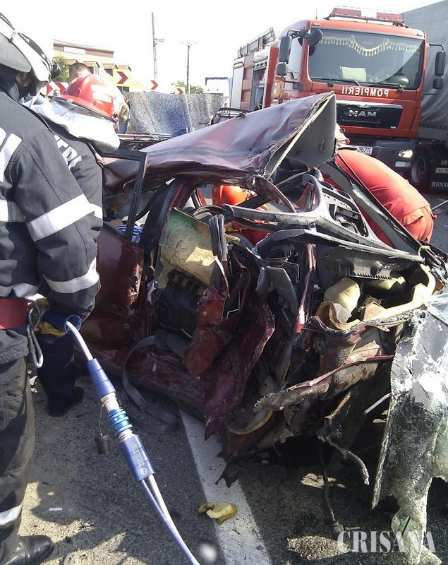 Accidentul s-a produs ieri dimineaţă, în jurul orei 10.30, la ieşirea din localitatea Săcueni, înspre Oradea. Potrivit informaţiilor furnizate de reprezentanţii ISU „Crişana", Inspectoratul a fost sesizat prin numărul unic 112, cu privire la producerea unui accident rutier pe DN 19, pe raza localităţii Săcueni, în care au fost implicate un autoturism şi un autotren, cinci persoane aflate în autoturism fiind rănite. „La locul producerii evenimentului au fost mobilizate de urgenţă trei echipaje ale SMURD, echipajele de pompieri militari paramedici ale Staţiei de Pompieri Săcueni şi Detaşamentului 2 de Pompieri Oradea, precum şi echipajul de terapie intensivă mobilă, o autospecială de descarcerare din cadrul Detaşamentului 2 de Pompieri Oradea, o autospecială cu modul de descarcerare din cadrul Staţiei de Pompieri Săcueni şi un echipaj al Serviciului de Ambulanţă Judeţean", a precizat cpt. Camelia Roşca, purtătorul de cuvânt al ISU. Ajunşi la faţa locului, salvatorii au găsit trei victime captive între fiarele contorsionate ale autoturismului, două dintre cele trei persoane încarcerate fiind în stare de inconştienţă. Echipajele de pompieri au intervenit pentru descarcerarea victimelor şi acordarea îngrijirilor medicale celor cinci, care au fost transportaţi ulterior la spital. Trei minori, în vârstă de 13, 14, respectiv 16 ani au scăpat fără leziuni grave, însă starea şoferului, un tânăr în vârstă de 19 ani, şi a pasagerului din dreapta sa, tot un tânăr, de 17 ani, este critică. „Două dintre victime sunt în stare gravă. Au fost transportate la Unitatea de Primiri Urgenţe a Spitalului Judeţean, unde sunt supuşi unor investigaţii. Cei doi au suferit leziuni grave la cap, torace şi fracturi de membre. O altă victimă, o adolescentă de 16 ani, a fost transportată tot la Spitalul Judeţean, dar nu a suferit leziuni care să îi pună viaţa în pericol. Ceilalţi doi copii au fost transportaţi la Spitalul Municipal din Oradea, dar starea lor nu este gravă. Au scăpat cu contuzii şi escoriaţii", a declarat dr. Hadrian Borcea, şeful UPU-SMURD Bihor. La faţa locului au ajuns şi poliţiştii care au demarat cercetările în vederea stabilirii cauzelor producerii accidentului. Primele informaţii arată că acesta s-a produs din cauza tânărului de 19 ani aflat la volanul maşinii. „Un tânăr de 19 ani, din localitatea Baia Sprie, judeţul Maramureş, în timp ce conducea un autoturism pe direcţia Săcueni - Oradea, nu a adaptat viteza de deplasare la condiţiile de drum. Într-o curbă periculoasă, a pierdut controlul asupra direcţiei de deplasare, autoturismul a intrat în derapaj, a pătruns pe contrasens şi a acroşat partea stânga spate a remorcii unui autotren condus din sens opus de un bărbat de 52 de ani, din Ucraina. În urma acroşajului, autoturismul s-a răsucit pe partea carosabilă şi a fost proiectat cu partea laterală dreapta în partea din faţă a unui alt autotren cu semiremorcă, condus din sens opus de un tânăr de 22 de ani, din Ucraina", se arată într-un comunicat de presă transmis, ieri, de IPJ Bihor. Toţi ocupanţii maşinii implicate în accident erau din Maramureş. Poliţiştii au precizat că în acest caz sunt continuate cercetările.