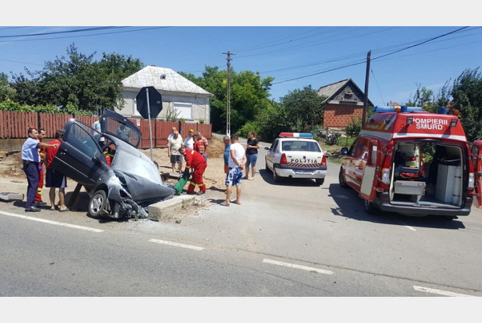 Accidentul s-a produs ieri, în jurul orei 13.00, în localitatea bihoreană Tarcea, unde un bărbat a intrat cu maşina într-un cap de pod. În urma impactului, autoturismul a rămas suspendat, iar şoferul blocat înăuntru. "Apelul la 112 a fost înregistrat la ora 13.18. Conducătorul unui autoturism a intrat cu maşina într-un cap de pod. Este vorba despre o autoaccidentare. Poliţiştii rutieri sunt la faţa locului şi efectuează cercetări pentru stabilirea cu exactitate a cauzelor şi împrejurărilor producerii autoaccidentării", a declarat Ioana Lascău, ofiţer de presă al IPJ Bihor. Inspectoratul pentru Situaţii de Urgenţă „Crişana” al judeţului Bihor a mobilizat la faţa locului două echipaje de pompieri militari din cadrul staţiilor Săcueni, respectiv Valea lui Mihai, din care unul de paramedici. "Ajunşi la faţa locului, pompierii militari au procedat la evacuarea victimei rămase captivă în autoturismul avariat şi la acordarea primului ajutor", a precizat maiorul Camelia Roşca, purtătorul de cuvânt al ISU Crişana. Potrivit acesteia, şoferul a fost transportat la Unitatea de Primiri Urgenţe a Spitalului Judeţean cu răni uşoare.