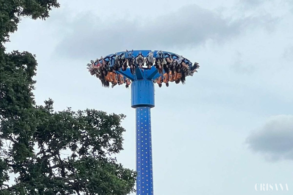 Echipamentul de mari dimensiuni funcționează ca un pendul care îi ridică pe turiști, îi învârte și uneori îi ține cu capul în jos. Acesta s-a blocat în timp ce oamenii se aflau la înălțimea de 30 de metri, cu picioarele în sus, potrivit Sky News.