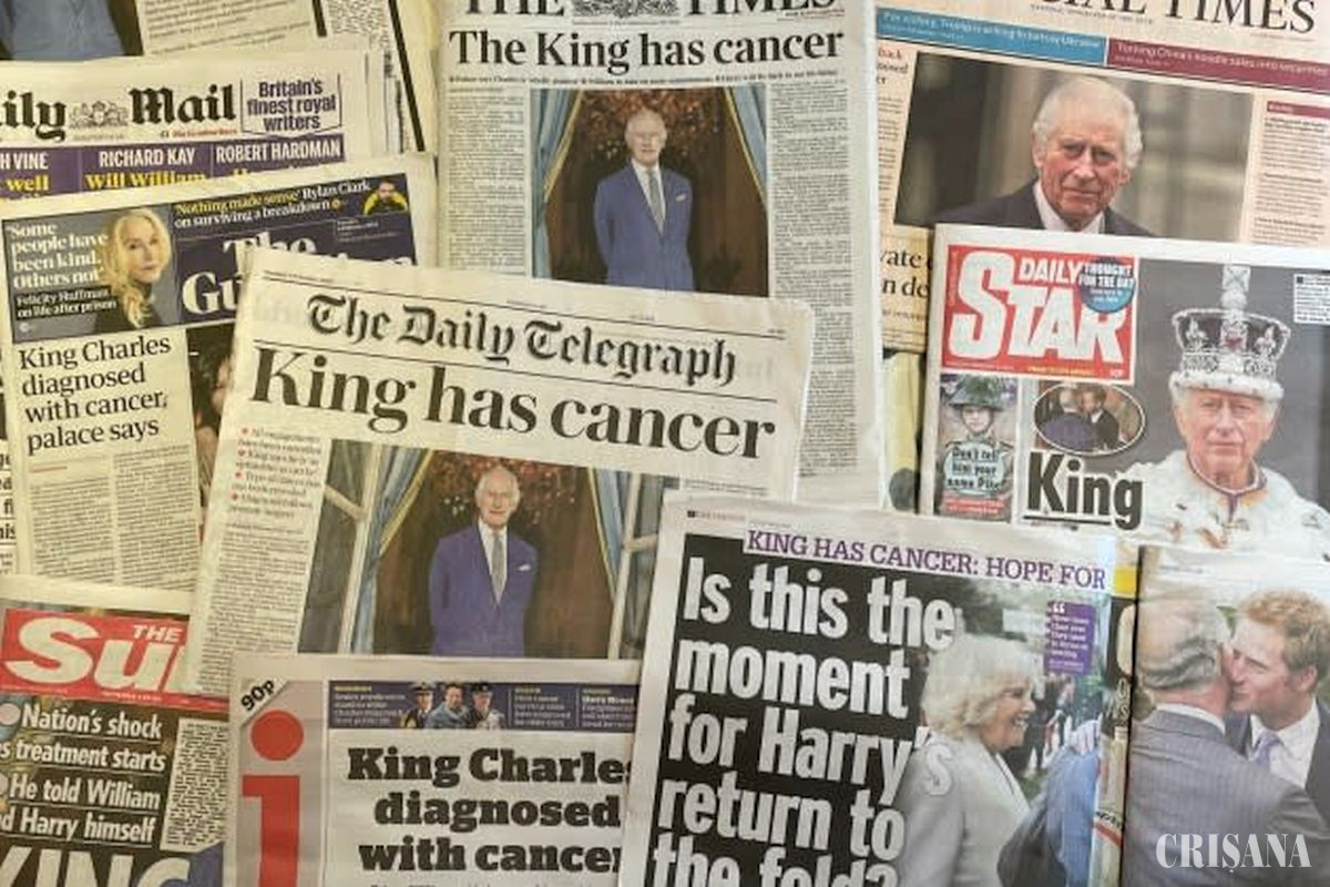 „Am cancer", „Şocul cancerului" şi „Regele are cancer": portretul regelui Charles al III-lea a fost tipărit marţi pe primele pagini ale tuturor ziarelor britanice, semn al şocului provocat de anunţul privind boala cu care a fost diagnosticat monarhul în vârstă de 75 de ani, informează AFP.