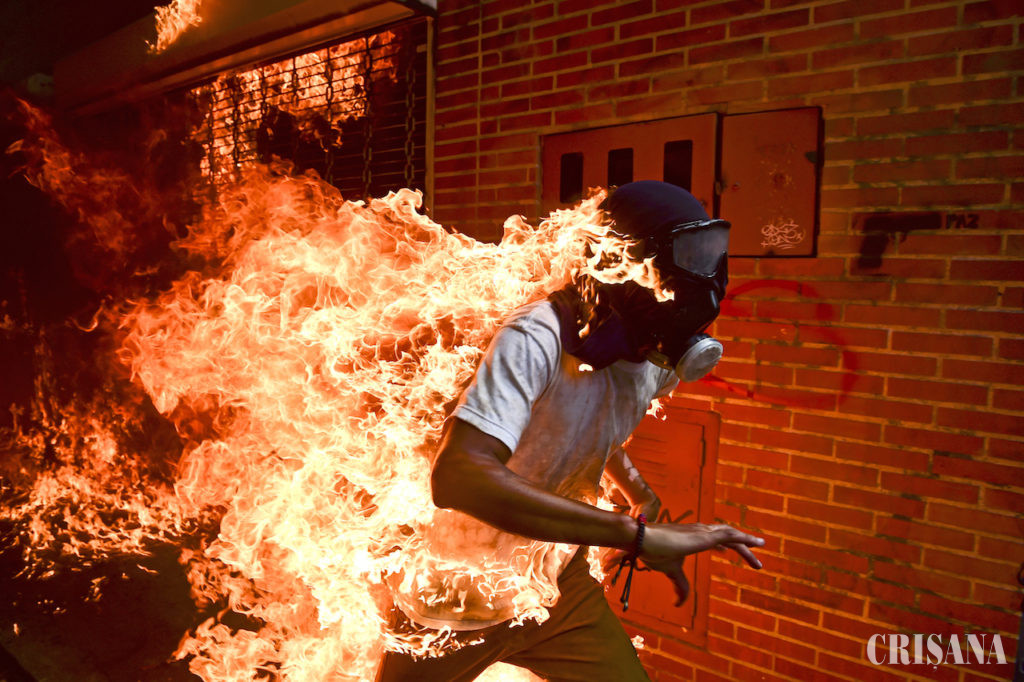 Imaginea unui bărbat în flăcări, realizată în timpul protestelor de la Caracas de anul trecut, de fotojurnalistul Ronaldo Schemidt de la Agence France-Presse (AFP), a fost desemnată fotografia anului la competiția World Press Photo 2018.