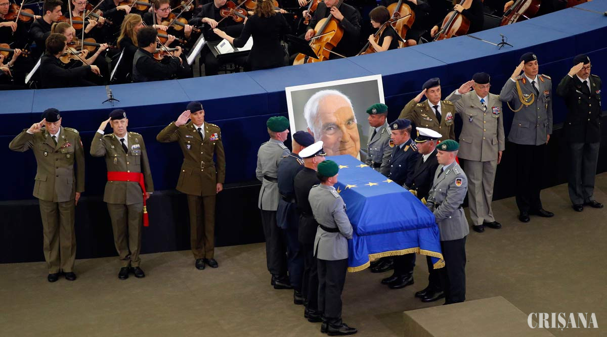 Sicriul în care se află corpul lui Helmut Kohl a fost învelit în drapelul Uniunii Europene şi depus câteva ore în sediul Parlamentului European din Strasbourg. Germania şi Uniunea Europeană au fost în timpul lui Helmut Kohl surse de inspiraţie pentru ţările est-europene, care erau încă sub regimuri comuniste, a afirmat Antonio Tajani, preşedintele Parlamentului European. "Europa lui Helmut Kohl nu se temea să ofere şi să configureze viitorul. Acest exemplu trebuie să ne ghideze şi acum", a subliniat Tajani, mulţumindu-i lui Helmut Kohl pentru angajamentul în favoarea UE şi pentru aportul adus introducerii monedei euro. Helmut Kohl a fost cancelar al Germaniei în perioada 1982-1998 (al Germaniei de Vest în intervalul 1982–1990 şi al Germaniei reunificate între 1990–1998) şi preşedinte al formaţiunii de centru-dreapta Uniunea Creştin-Democrată (CDU) din 1973 până în 1998. Helmut Kohl este considerat "părintele reunificării Germaniei", realizată în anul 1989. De asemenea, Helmut Kohl a fost unul dintre susţinătorii adoptării monedei euro de către Germania şi este considerat un artizan al tratatelor europene. Fostul preşedinte american George H.W. Bush s-a declarat profund îndurerat de moartea fostului cancelar german Helmut Kohl, pe care îl consideră "unul dintre cei mai mari lideri ai Europei postbelice". "Eu şi soţia mea, Barbara, suntem îndureraţi de moartea unui adevărat prieten al libertăţii, a unui om pe care eu îl consider a fi unul dintre cei mai mari lideri ai Europei postbelice. Helmut Kohl s-a remarcat în timp ce Germania instabilă se ridica din cenuşa de după război. (...) Helmut Kohl detesta războiul, dar detesta şi mai mult totalitarismul. Helmut Kohl şi-a devotat viaţa publică eforturilor de consolidare a instituţiilor democratice în ţara sa şi în străinătate. Colaborarea strânsă cu prietenul meu foarte bun pentru obţinerea unui sfârşit paşnic al Războiului Rece şi pentru reunificarea Germaniei în cadrul NATO va rămâne una dintre marile bucurii ale vieţii mele", a declarat fostul preşedinte al SUA într-un comunicat.