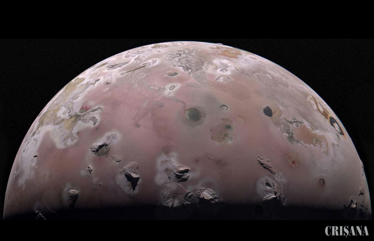 Io este puțin mai mare decât luna Pământului. Are un diametru de 3.600 de kilometri și aproximativ 400 de vulcani, potrivit NASA. Urmele de la erupțiile acestor vulcani se pot întinde pe kilometri întregi în spațiu și pot fi văzute de pe Pământ cu telescoape mari.