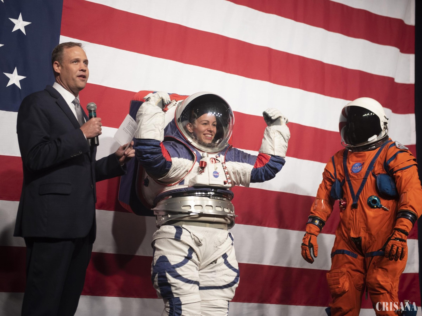 Marți, au fost prezentate două modele de costume. Exploration Extravehicular Mobility Unit (xEMU - Unitate mobilă de explorare extravehiculară) este un costum alb cu benzi albastre și roșii care va fi folosit de astronauți când vor păși pe Lună. Orion Crew Survival Suit este costumul care va fi folosit pentru călătoria de pe Terra pe Lună și înapoi, mai lejer, de culoare portocalie.