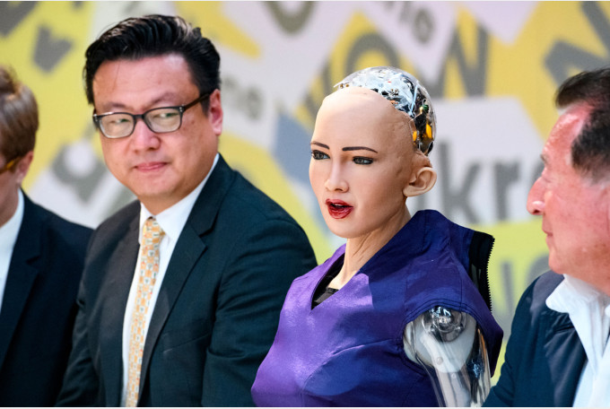 Întrebată despre capacitatea lor de a conduce lumea, Sophia, un robot dezvoltat de Hanson Robotics, a fost foarte clară: „Roboţii umanoizi pot să conducă cu un nivel de eficienţă mai mare decât cel al liderilor umani".