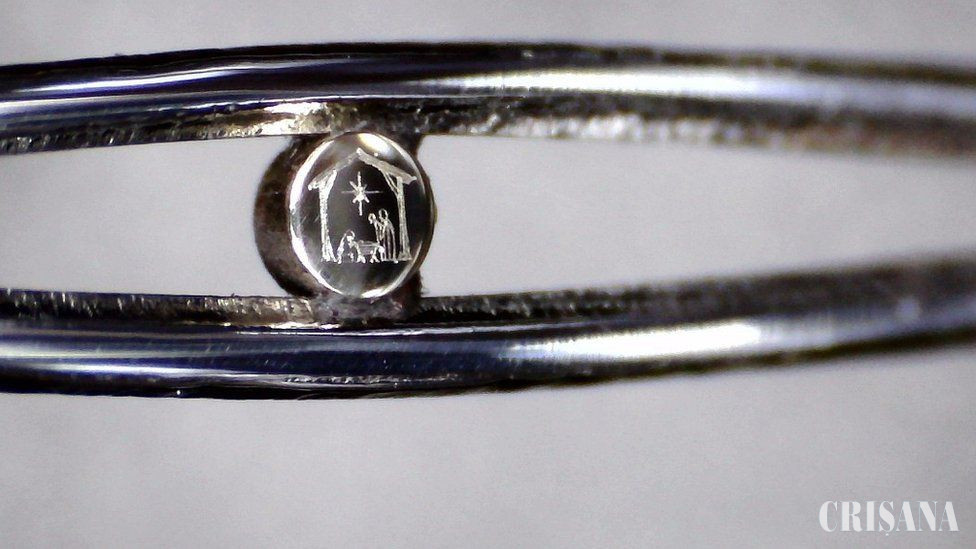 Vizitatorii Festivalului Naşterii Domnului (Nativity Festival - n.r.) din St Laurence Church, Northfield, vor putea să admire noua sa creaţie cu ajutorul unui microscop.
