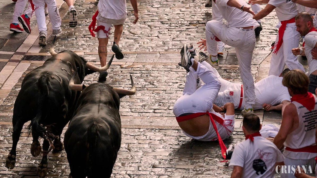 În timpul curselor cu tauri din cadrul Festivalului San Fermin, denumite „encierros”, mai mulți tauri de luptă sunt lăsați liberi pe străzi și apoi încep să alerge pentru a ajunge în arena din centrul orașului. Sute de pasionați, dintre care mulți poartă tradiționale cămăși albe și eșarfe roșii, aleargă alături de ei.