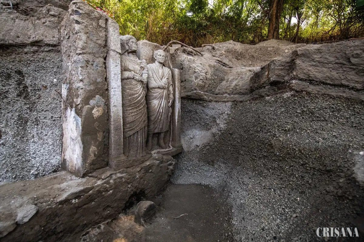 Un mormânt monumental cu basorelief, reprezentând un cuplu căsătorit - O nouă descoperire în Pompeii